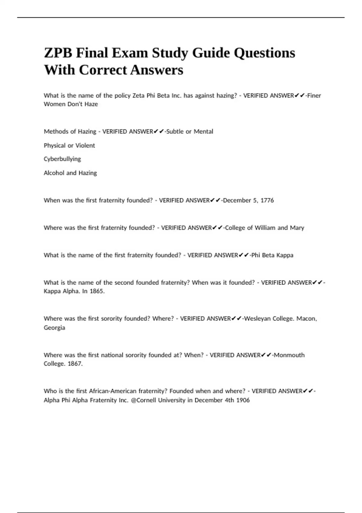 What |is |the |name |of |the |policy |Zeta |Phi |Beta |Inc. |has |against |hazing? |- |VERIFIED |ANSWER✔✔-Finer |