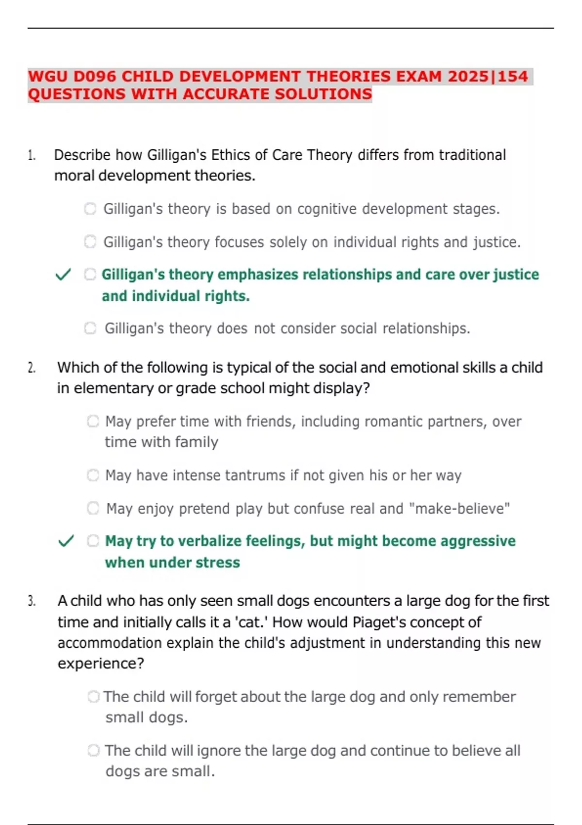 WGU D096 CHILD DEVELOPMENT THEORIES EXAM 2025|154 QUESTIONS WITH ACCURATE SOLUTIONS