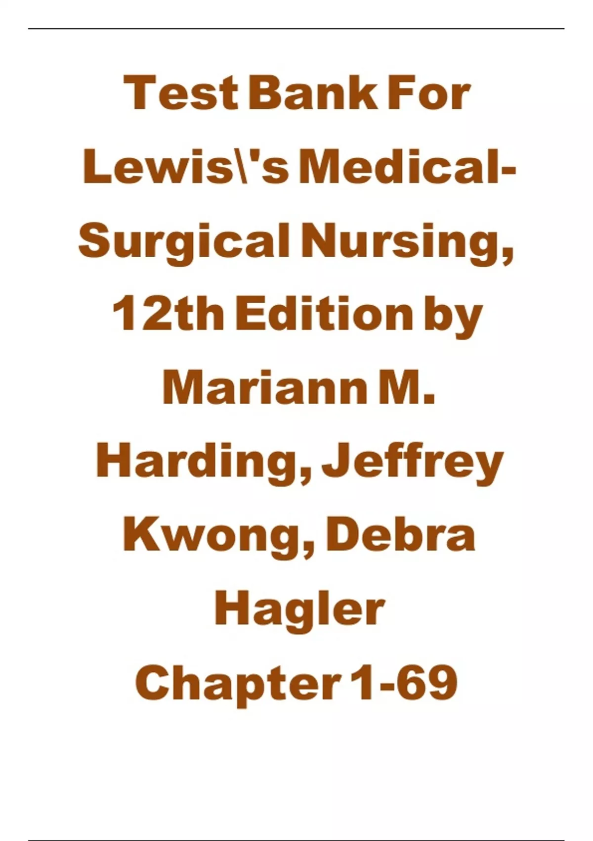 Harding: Lewis’s Medical-Surgical Nursing, 12th Edition