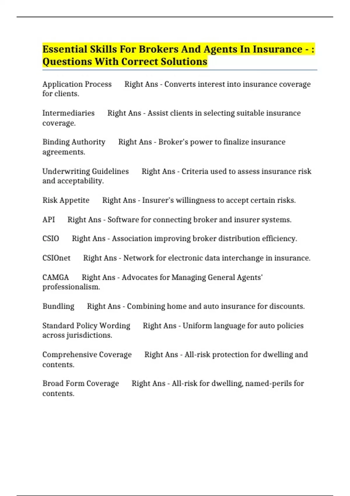Errors and Omissions Insurance Right Ans - Protects intermediaries from