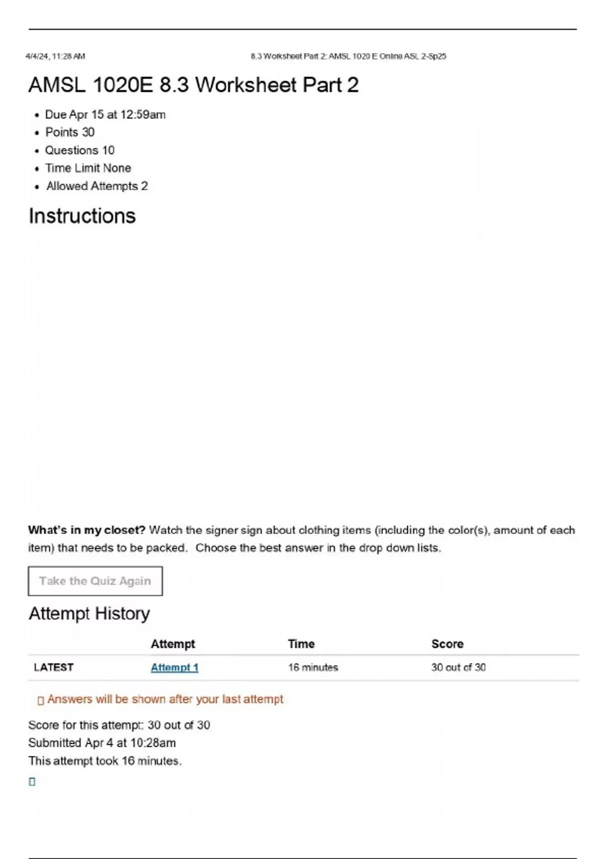 AMSL 1020E Quizzes for all units|2025 Update|100% Correct.