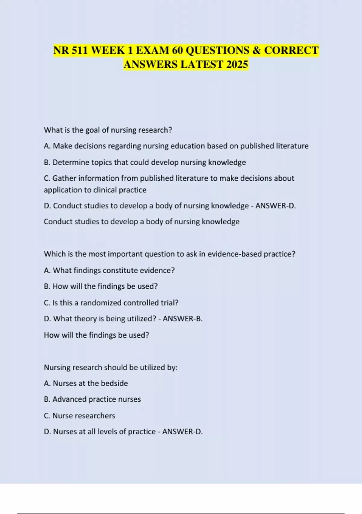 NR 511 WEEK 1 EXAM 60 QUESTIONS & CORRECT