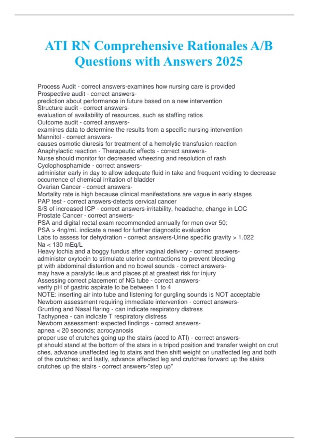 ATI RN Comprehensive Rationales A-B Questions with Answers 2025