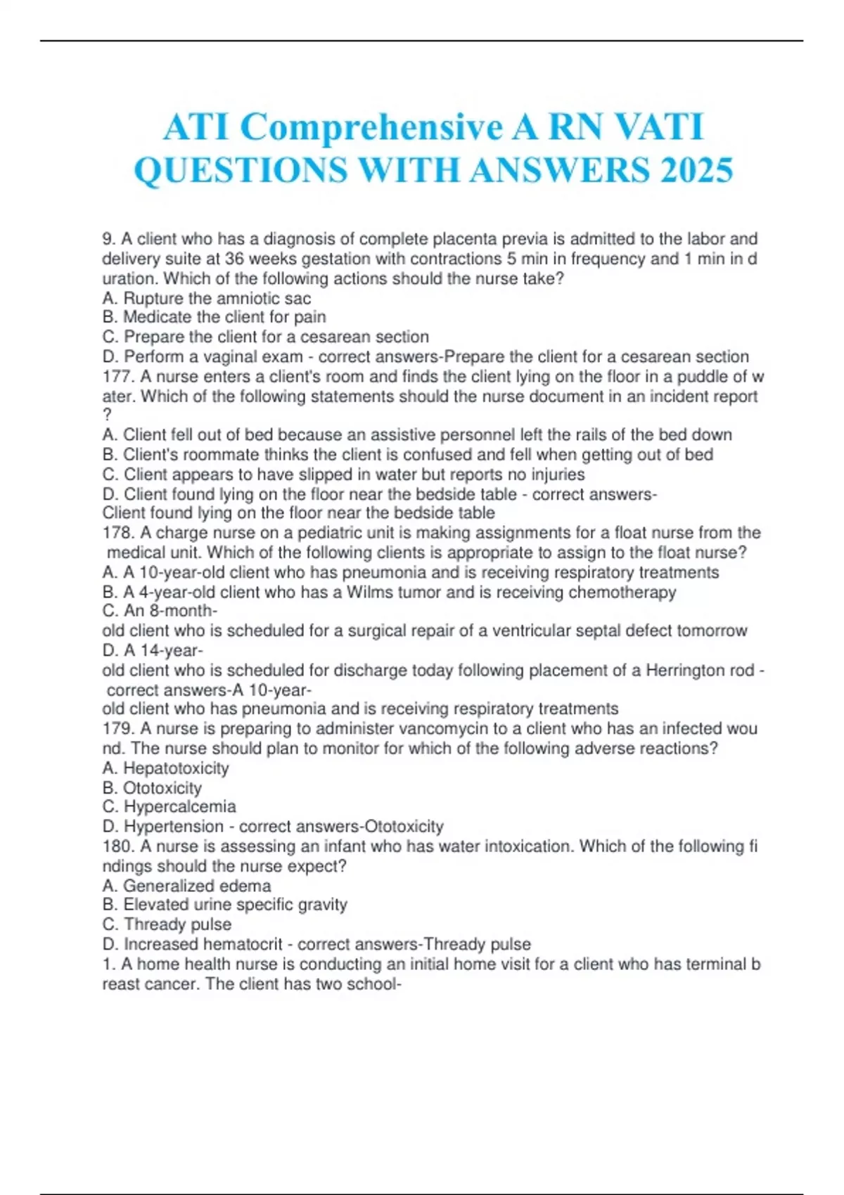 ATI Comprehensive A RN VATI QUESTIONS WITH ANSWERS 2025