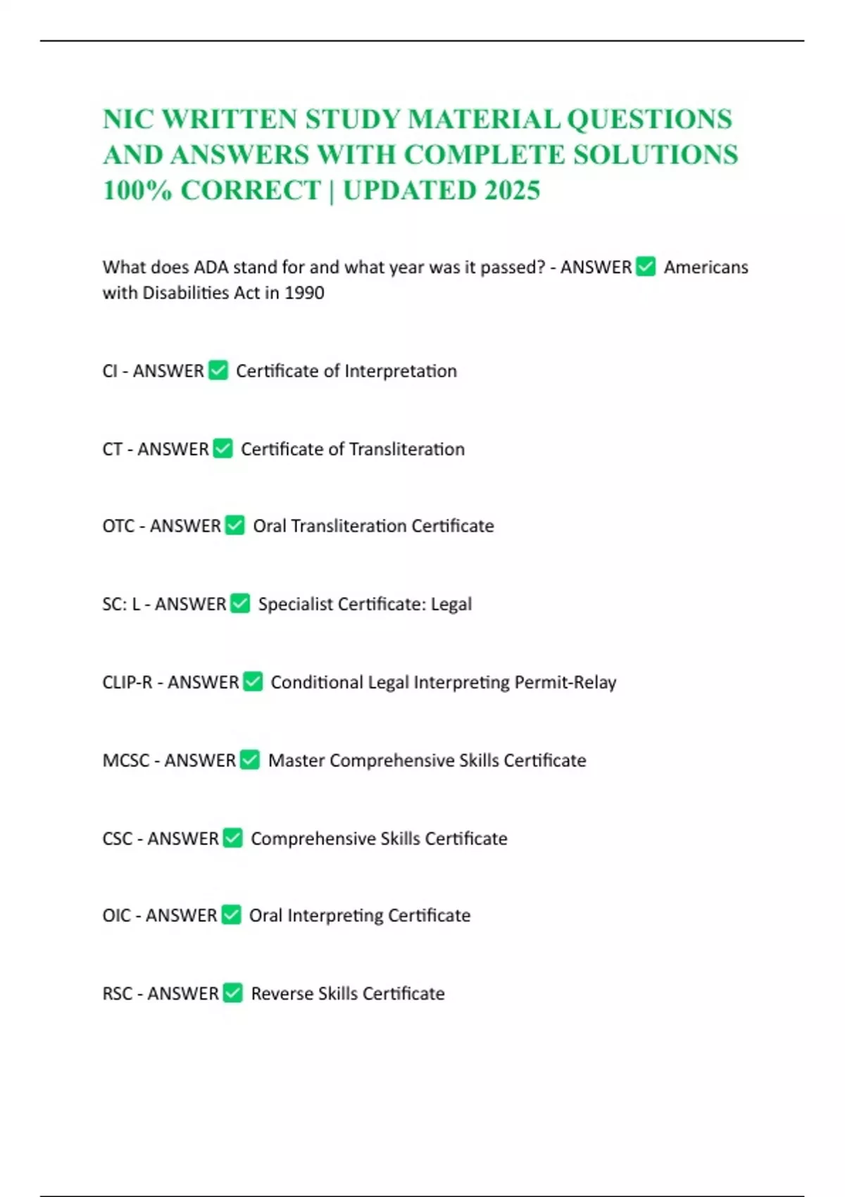 OIC - ANSWER Oral Interpreting Certificate