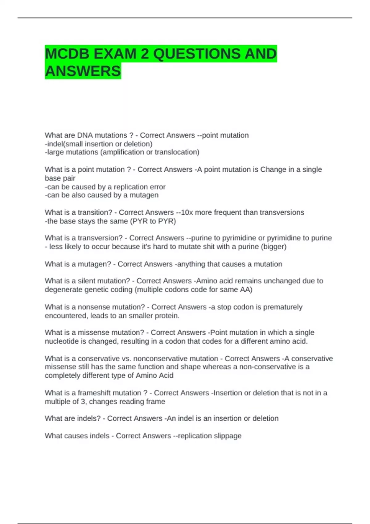 MCDB EXAM 2 QUESTIONS AND ANSWERS