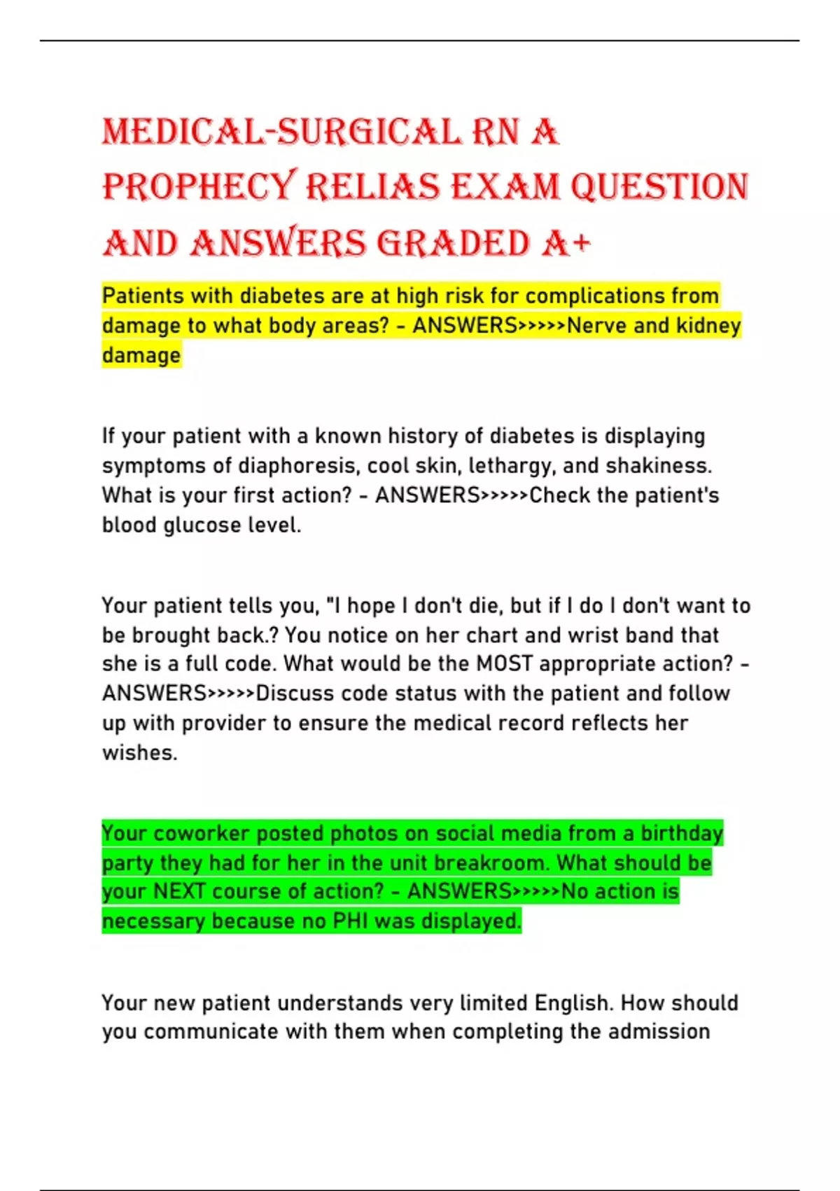 Prophecy Relias exam question