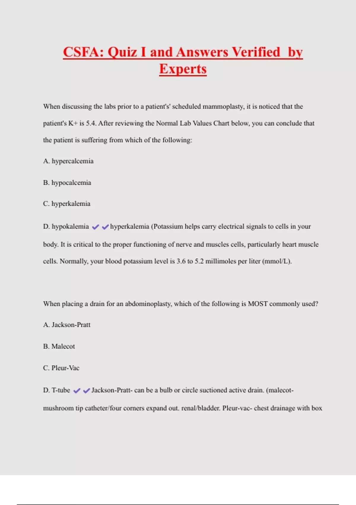 patient's K+ is 5.4. After reviewing the Normal Lab Values Chart below, you can conclude that