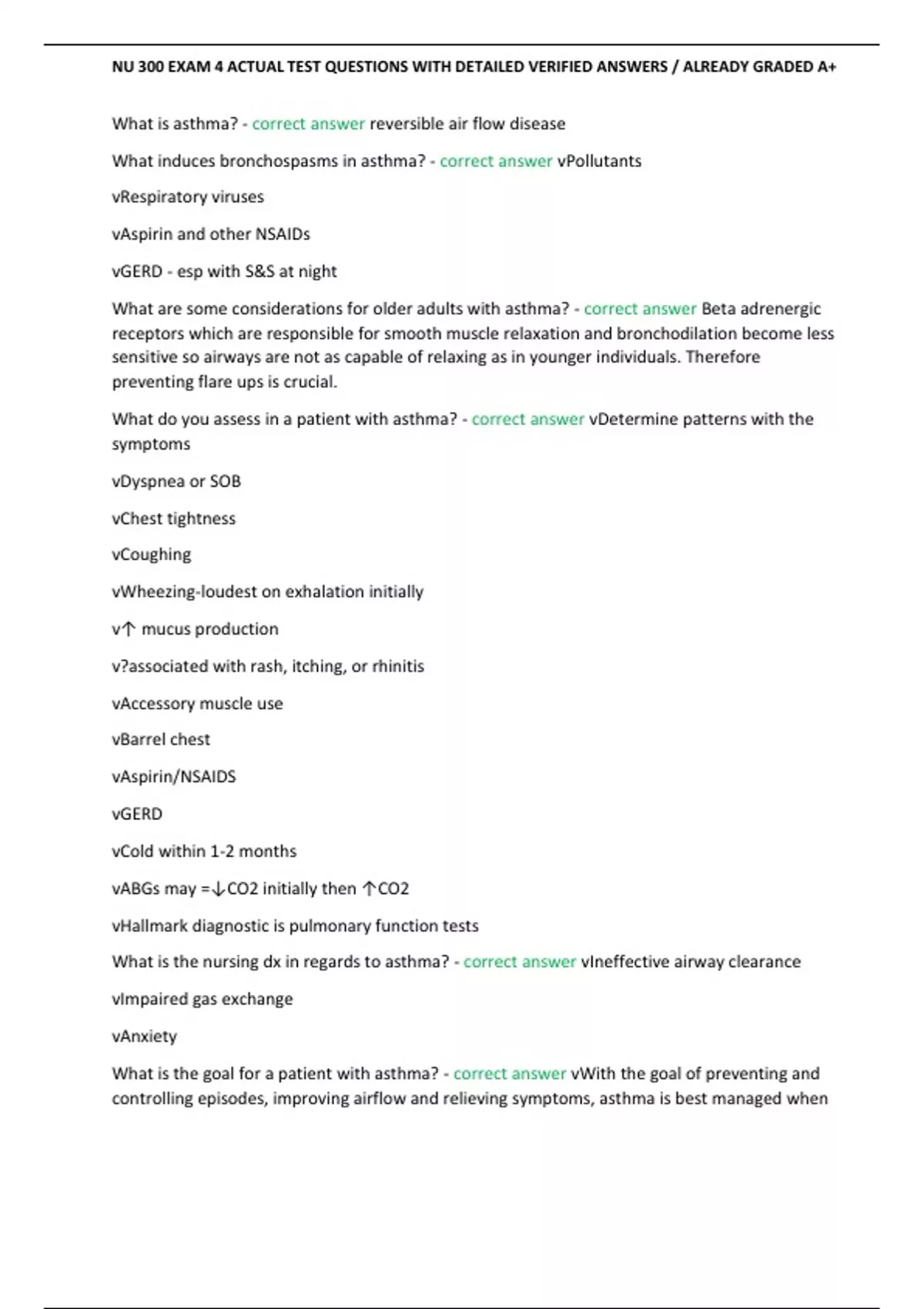 What is the nursing dx in regards to asthma? - correct answer vIneffective airway clearance