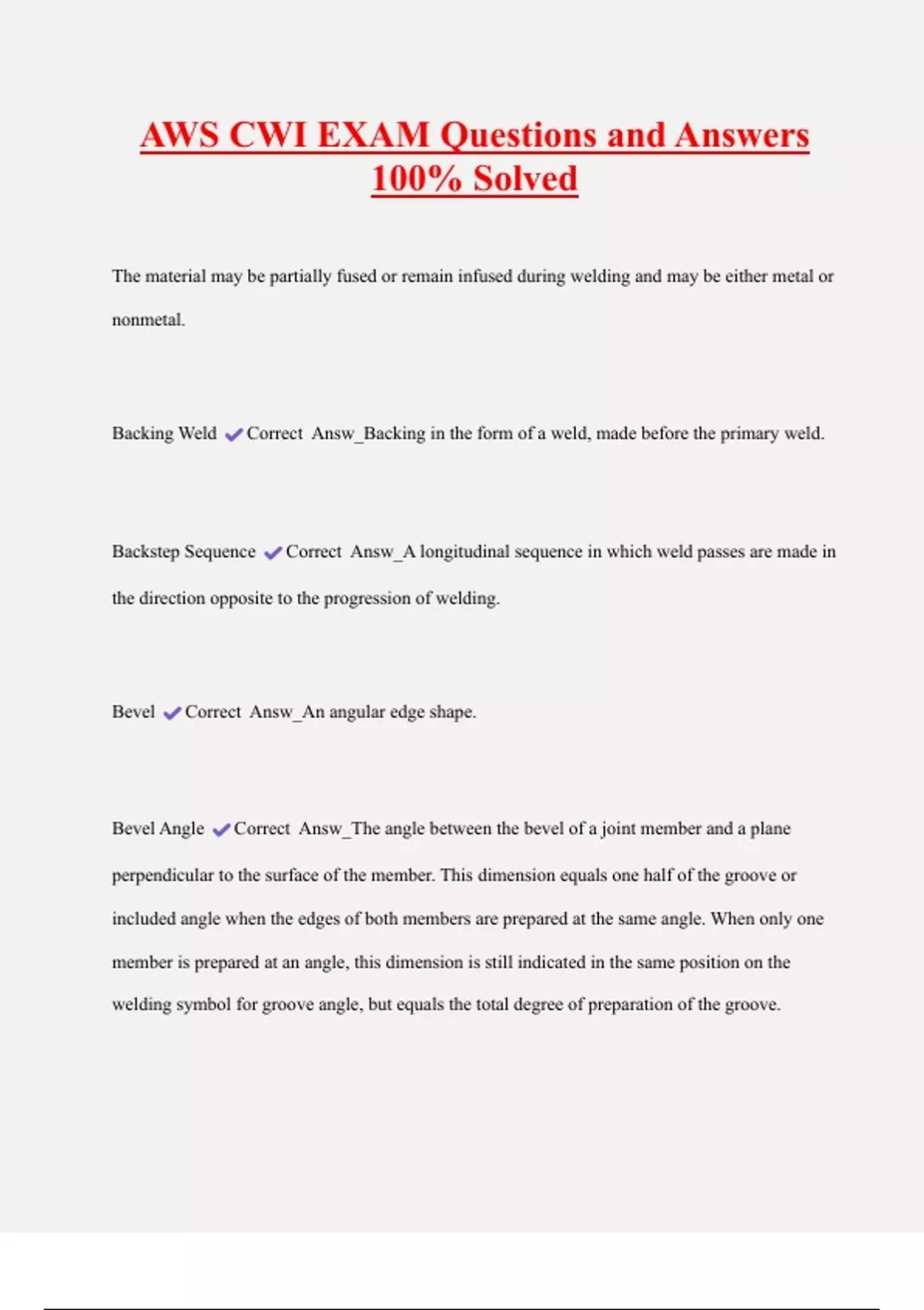 ,Bevel Groove Weld Correct Answ_A type of groove weld in which the mating members of