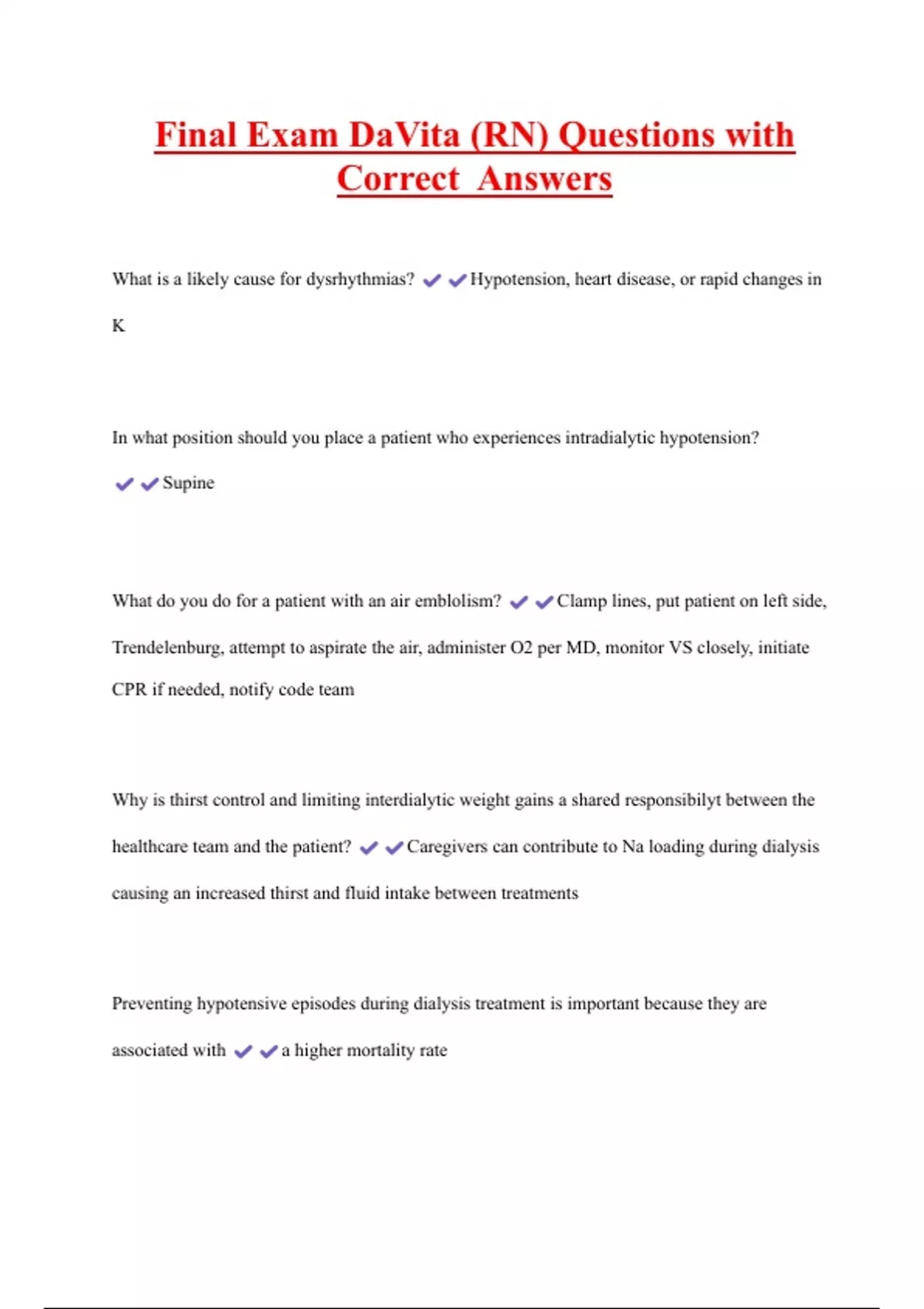 Preventing hypotensive episodes during dialysis treatment is important because they are