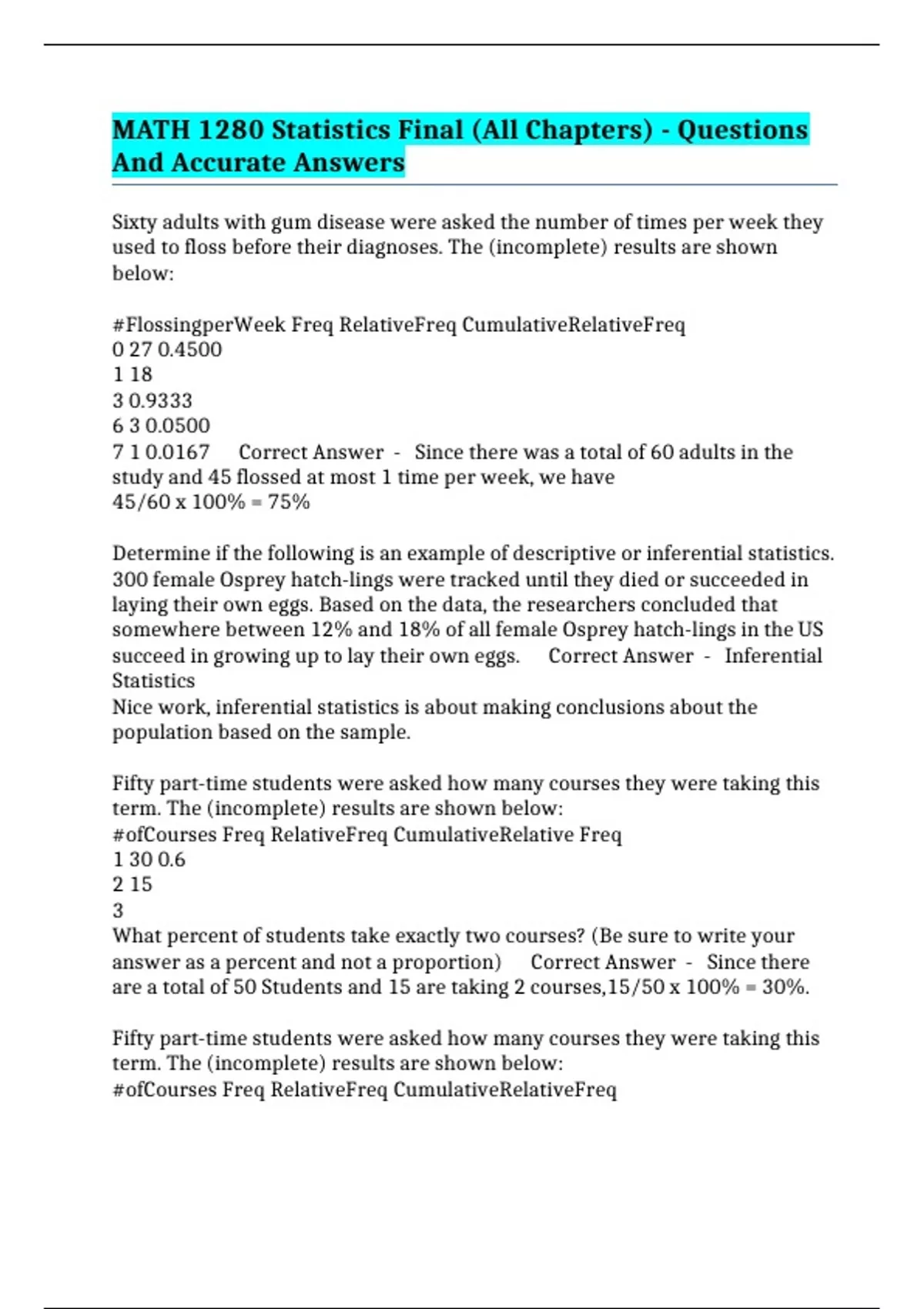 #ofCourses Freq RelativeFreq CumulativeRelativeFreq