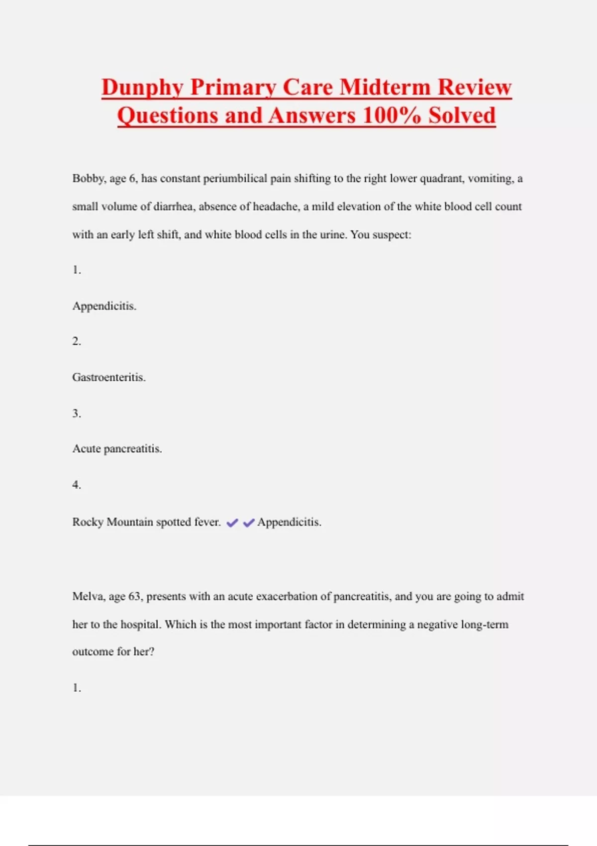 Rocky Mountain spotted fever. Appendicitis.