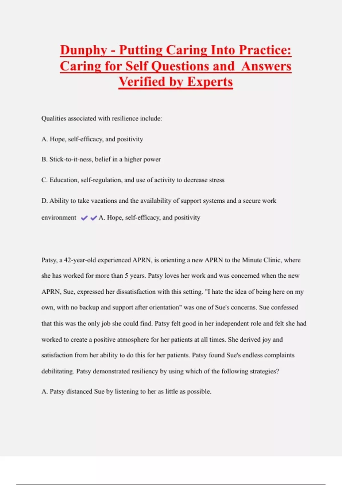 debilitating. Patsy demonstrated resiliency by using which of the following strategies?
