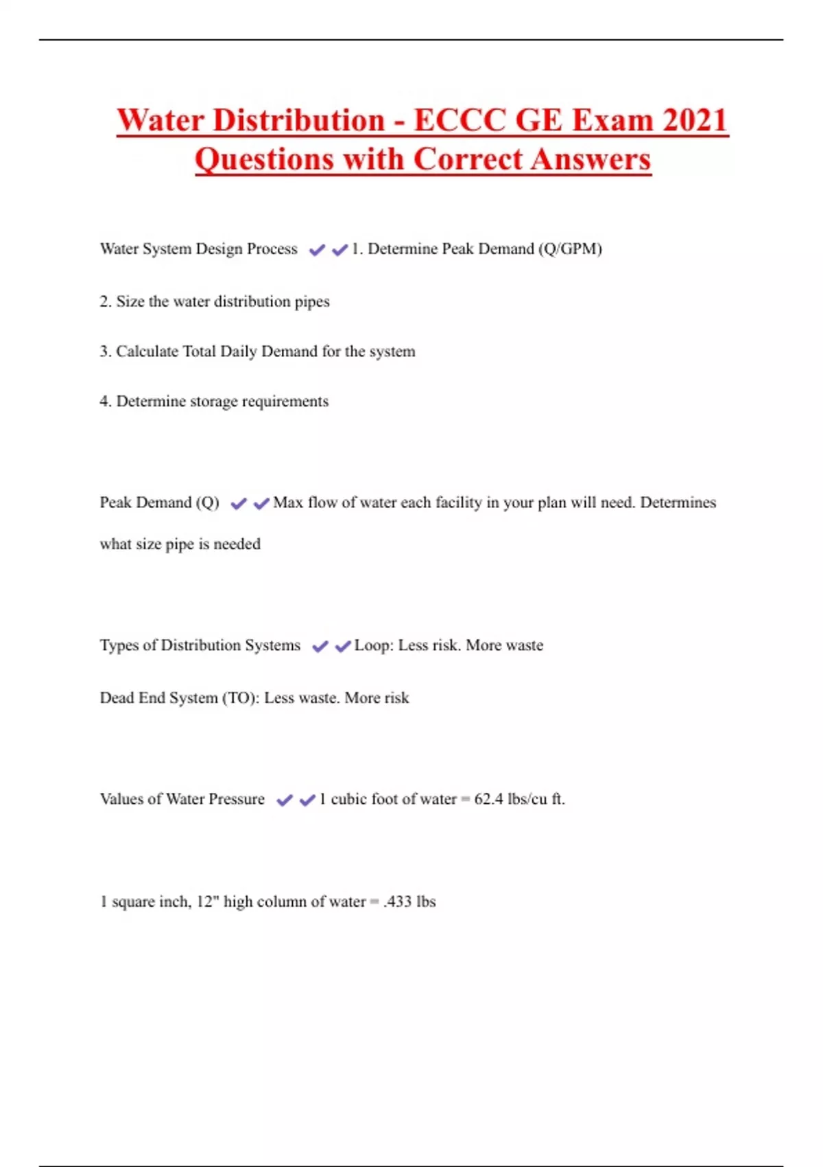 Water Distribution - ECCC GE Exam 2021 Questions with Correct Answers