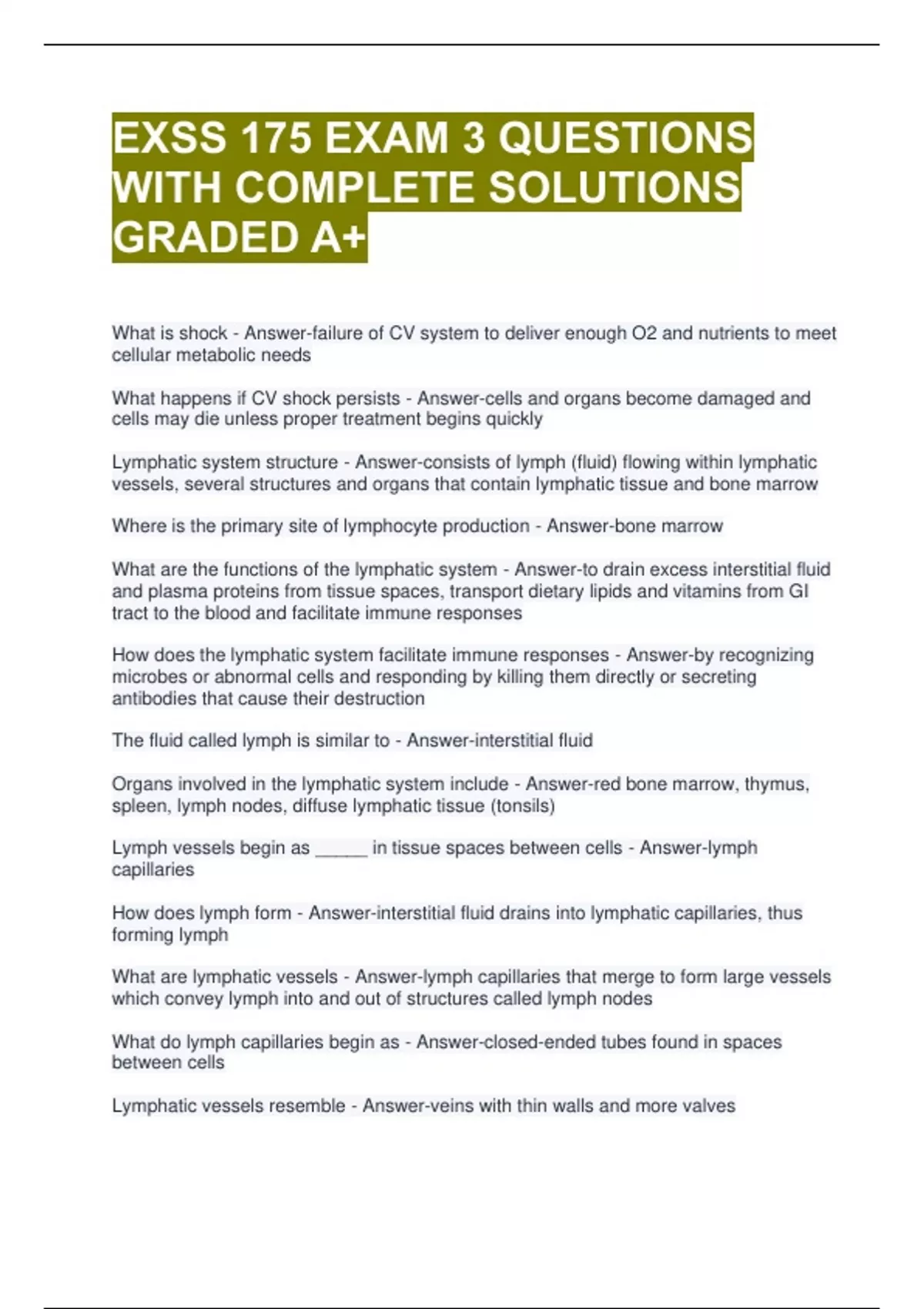 What are the functions of the lymphatic system - Answer-to drain excess interstitial fluid