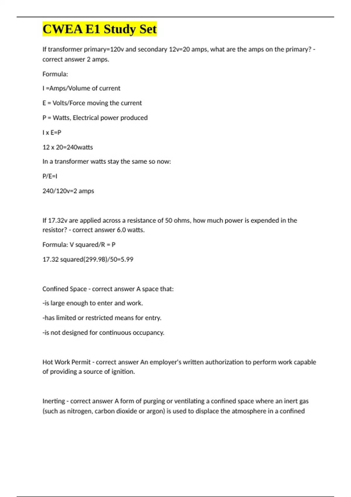 , CWEA E1 Study Set