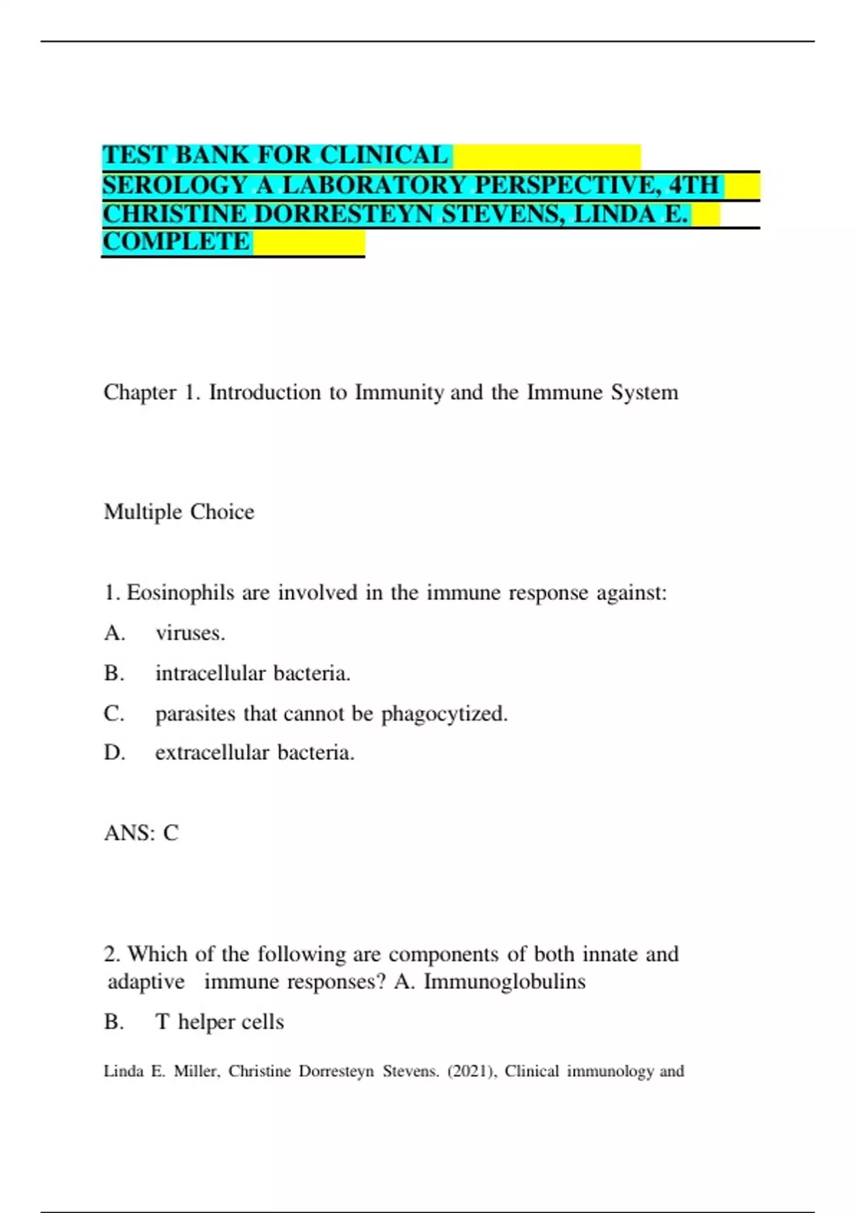 Linda llE. llMiller, llChristine llDorresteyn llStevens. ll(2021), llClinical llimmunology lland