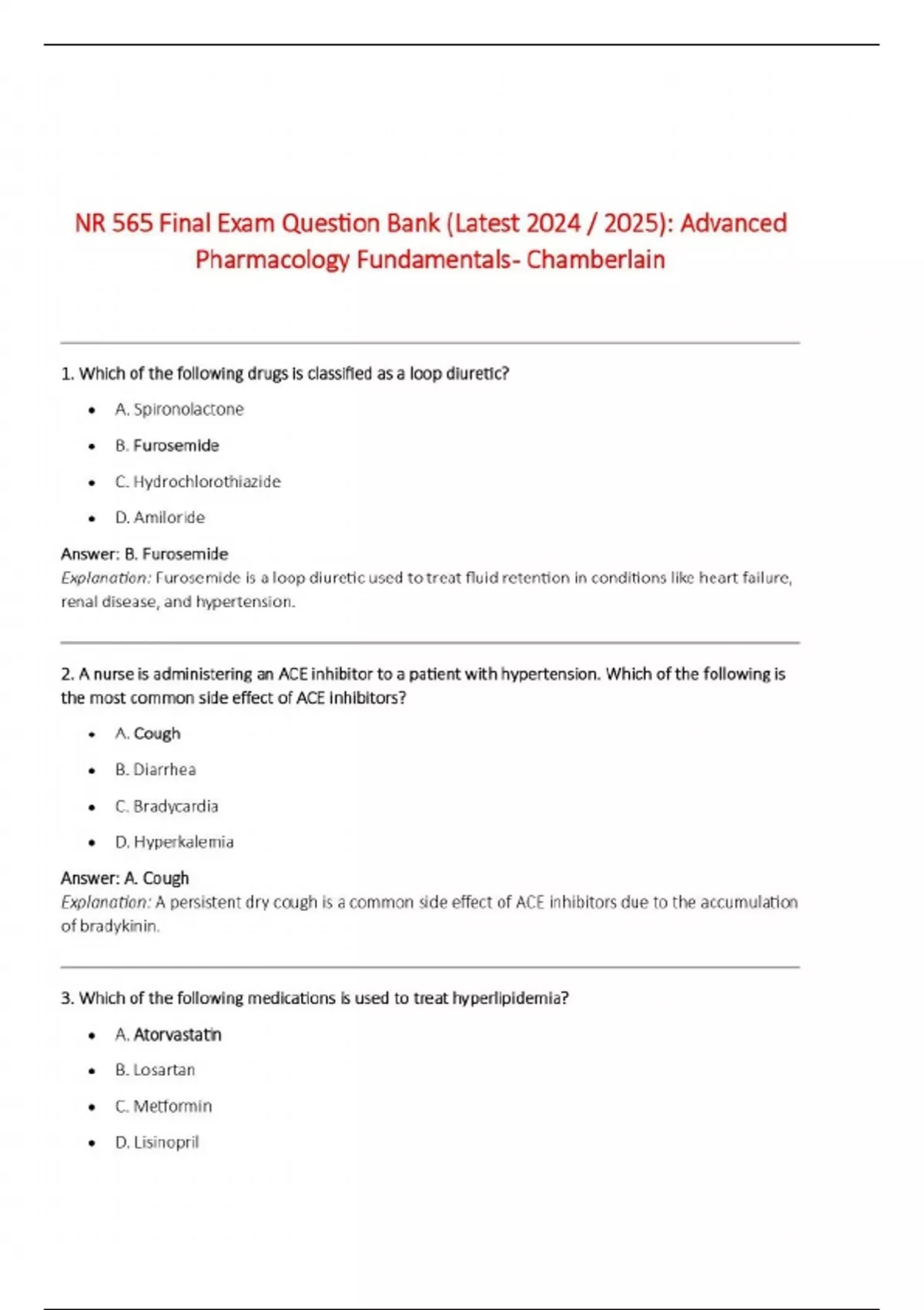 NR 565 Final Exam Question Bank (Latest 2024 / 2025): Advanced Pharmacology Fundamentals - Chamberlain
