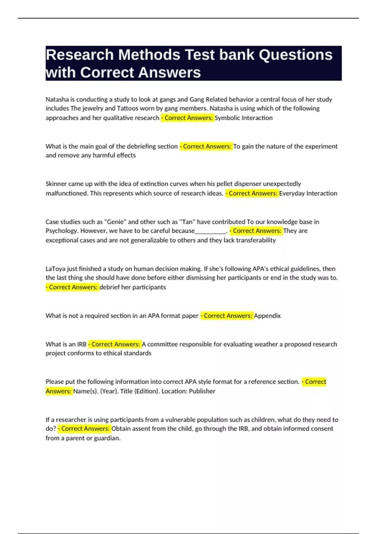 with Correct Answers
