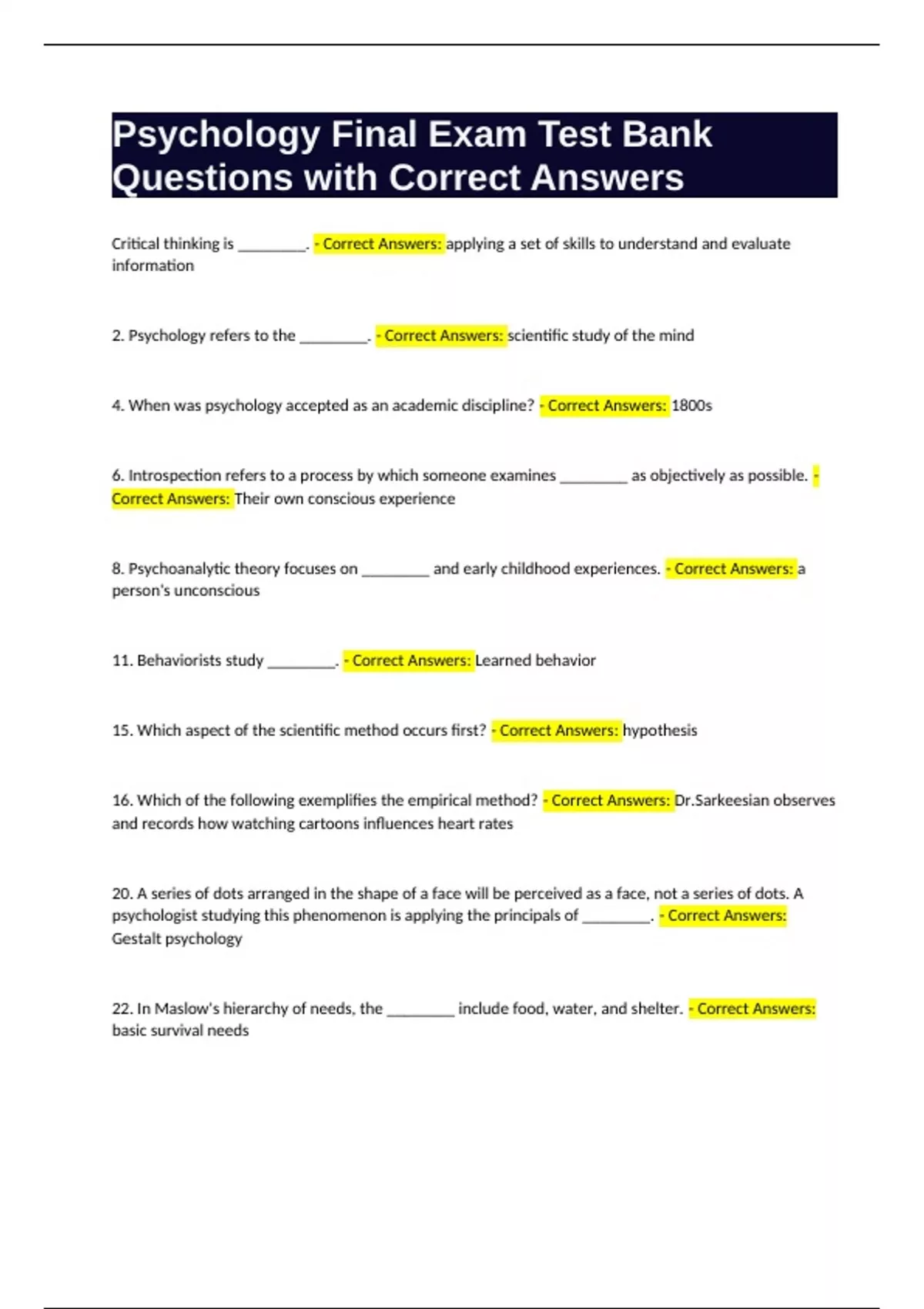 4. When was psychology accepted as an academic discipline? - Correct Answers: 1800s
