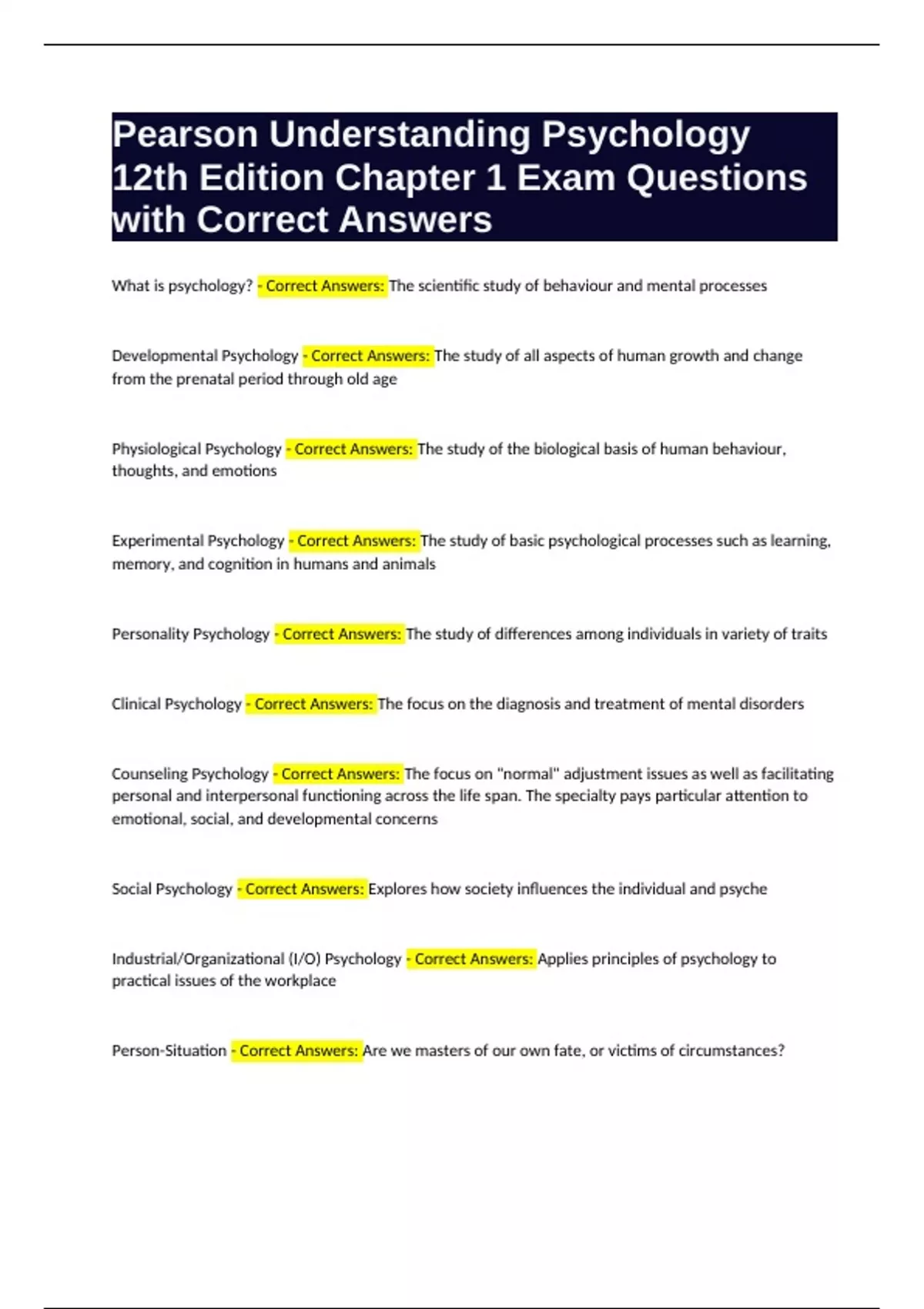 Clinical Psychology - Correct Answers: The focus on the diagnosis and treatment of mental disorders