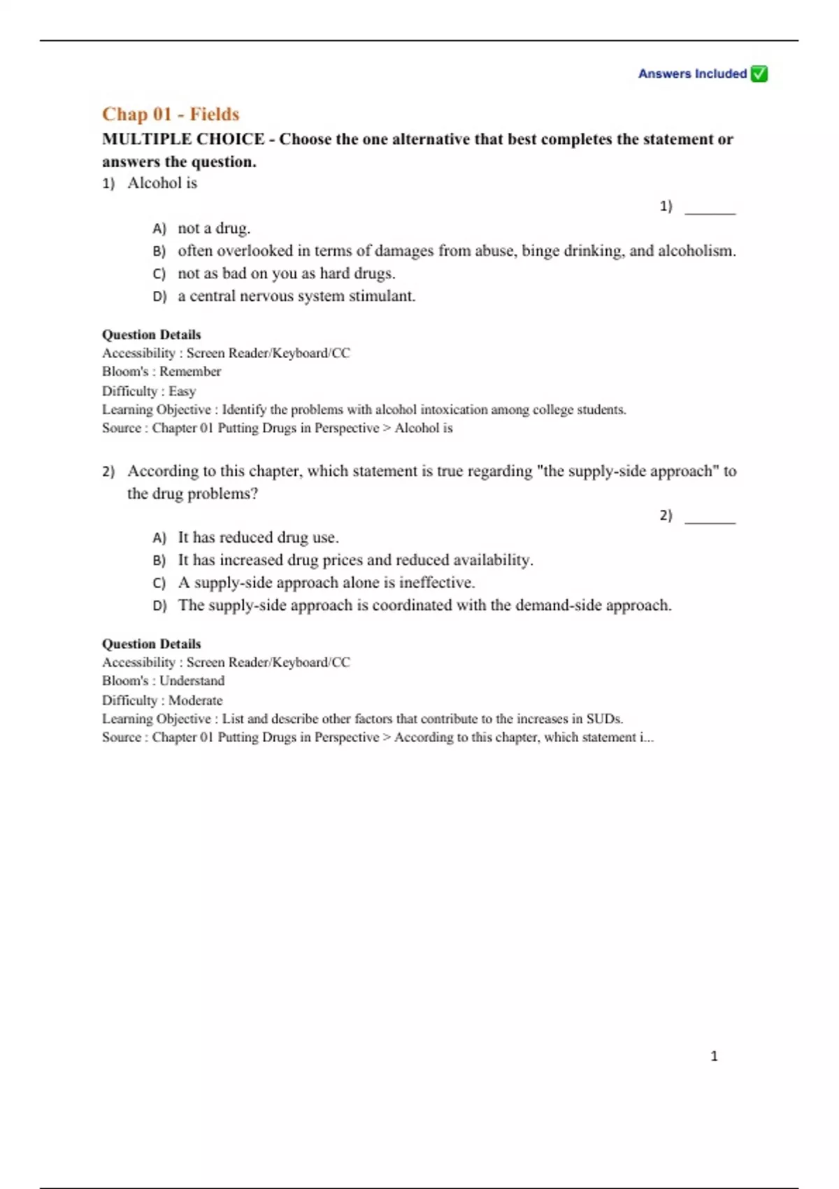 1) Alcohol is