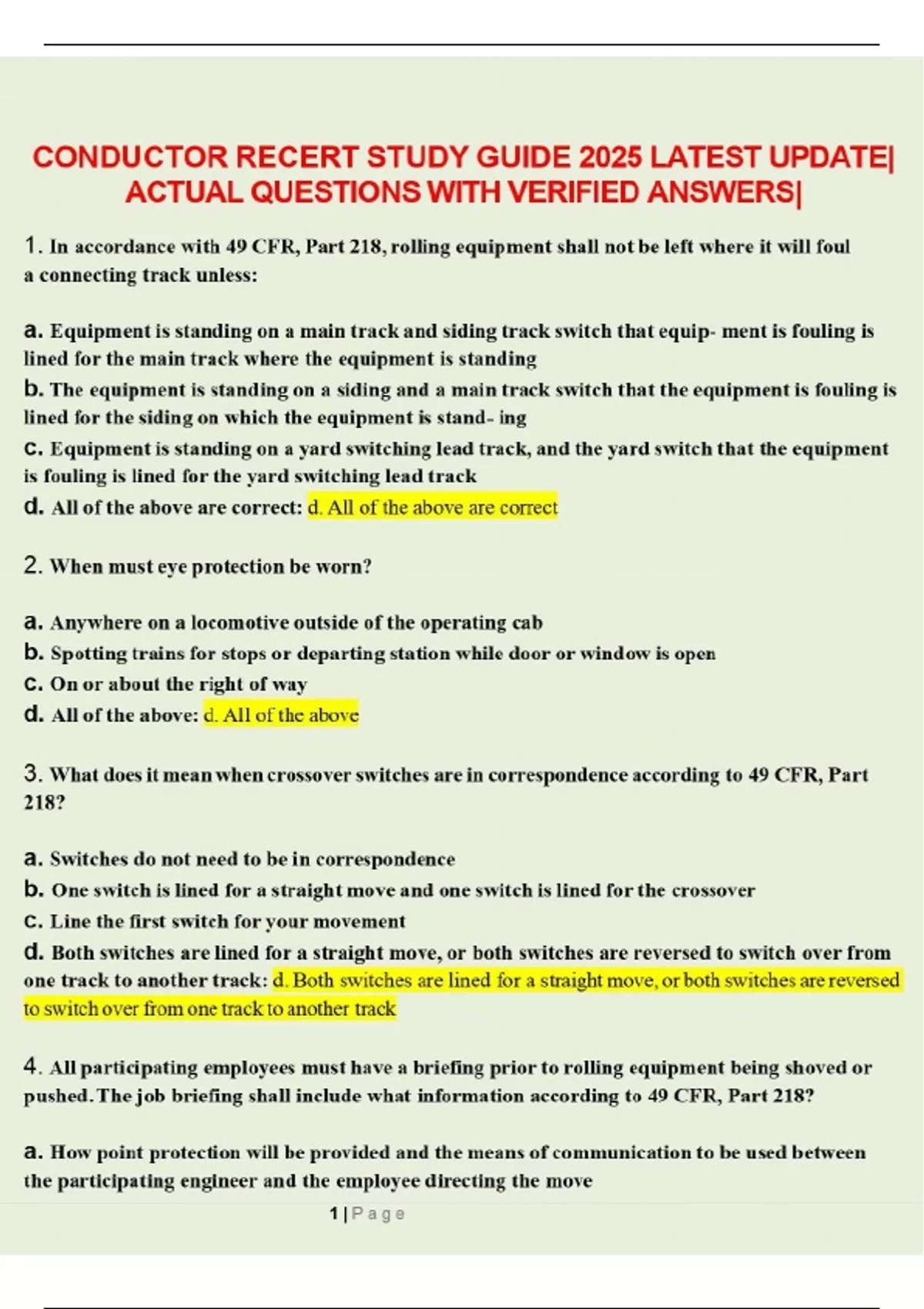 CONDUCTOR RECERT STUDY GUIDE 2025 LATEST UPDATE ACTUAL QUESTIONS WITH VERIFIED CONDUCTOR RECERT STUDY GUIDE 2025 LATEST UPDATE ACTUAL QUESTIONS WITH VERIFIED