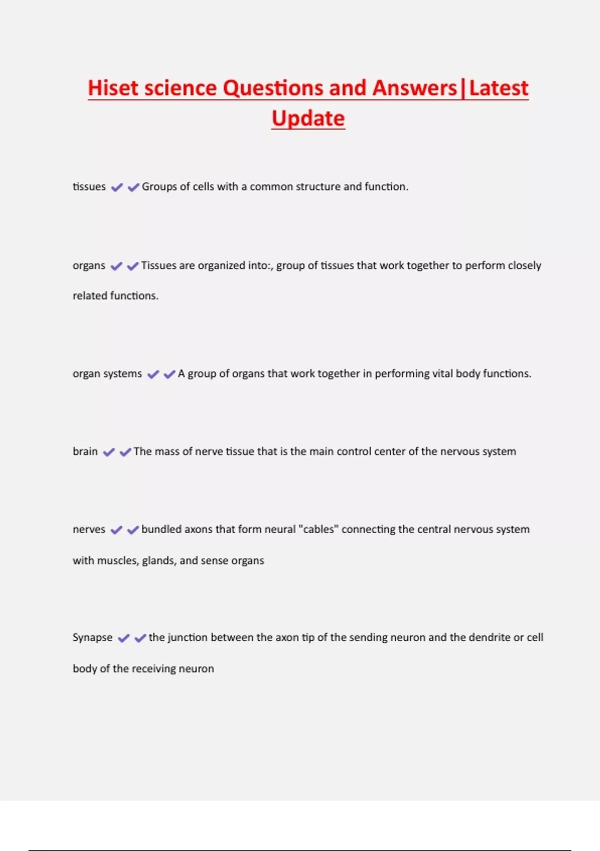 organs Tissues are organized into:, group of tissues that work together to perform closely