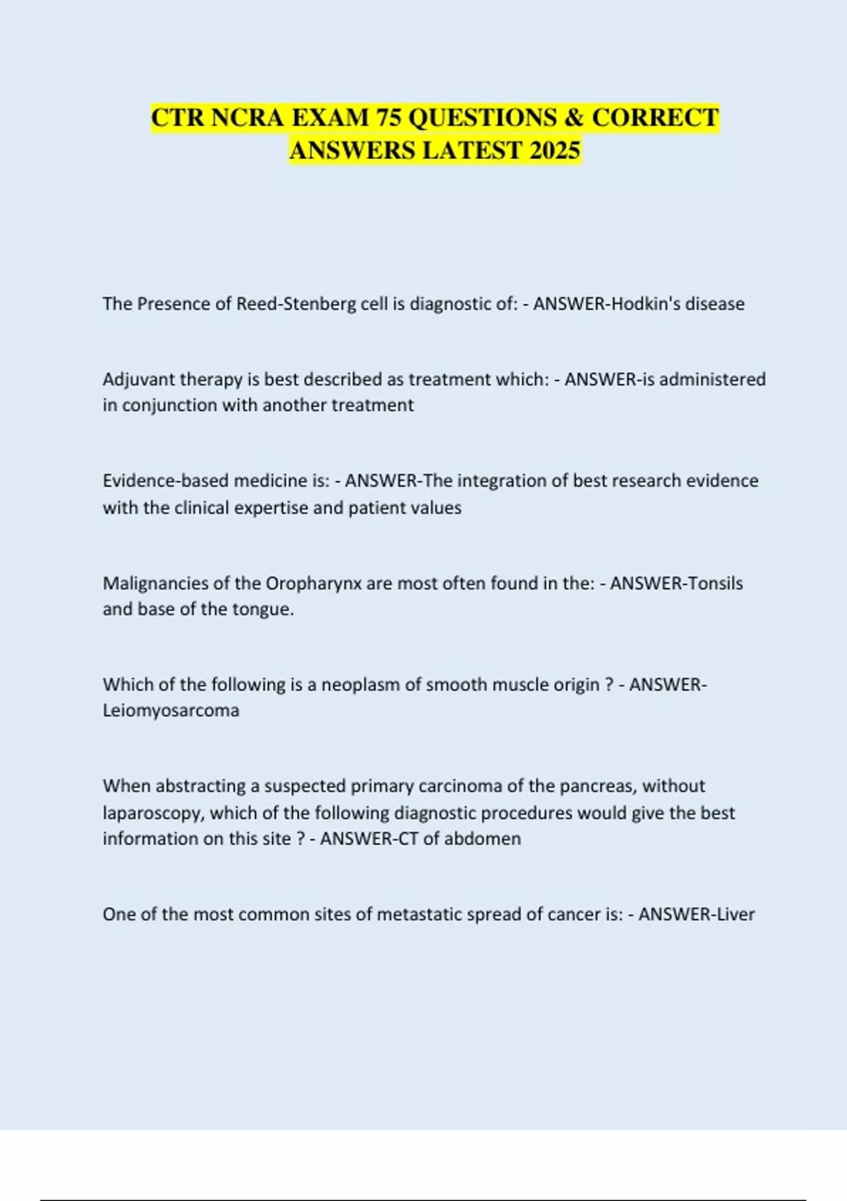 CTR NCRA EXAM 75 QUESTIONS & CORRECT