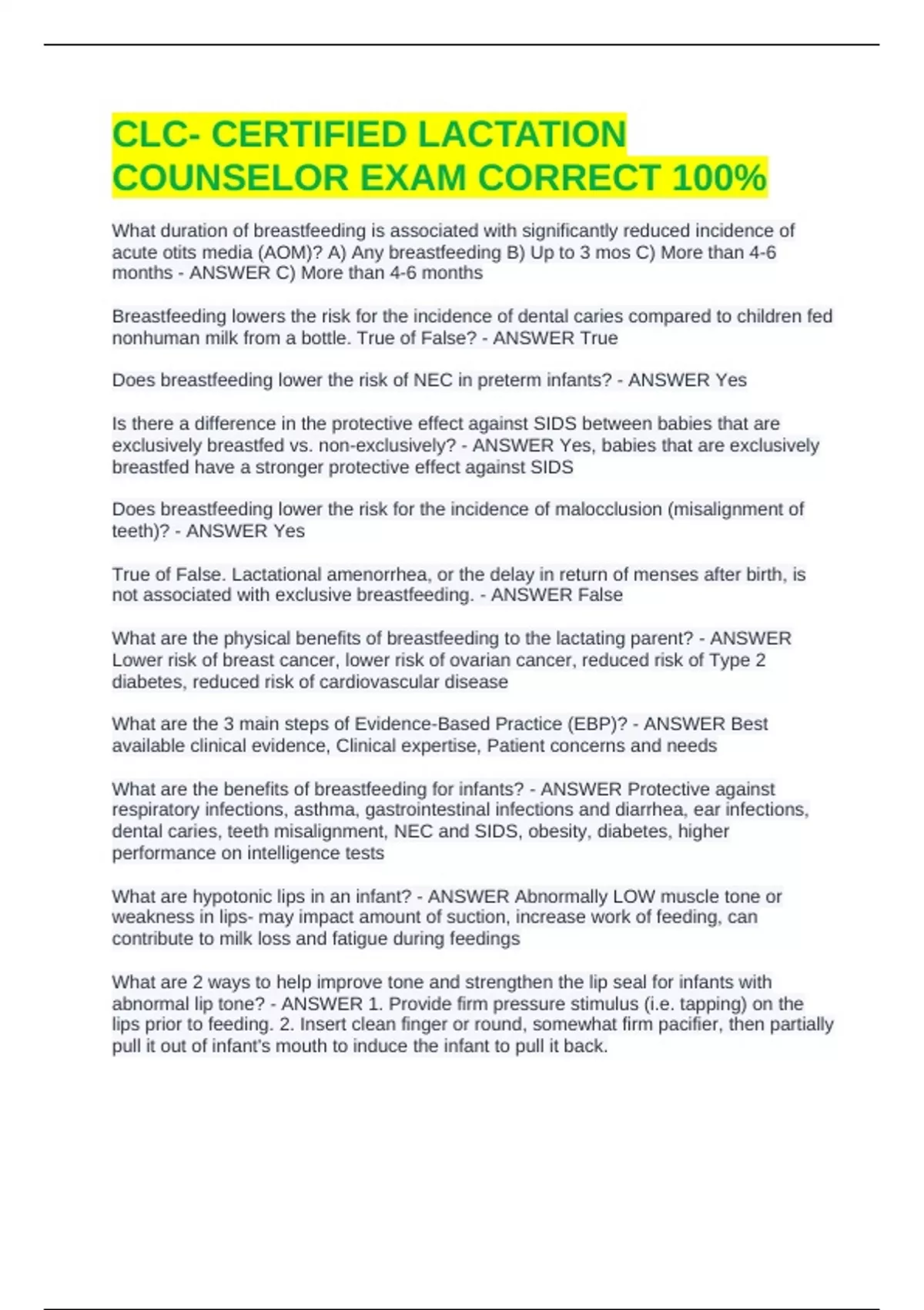 What are the benefits of breastfeeding for infants? - ANSWER Protective against