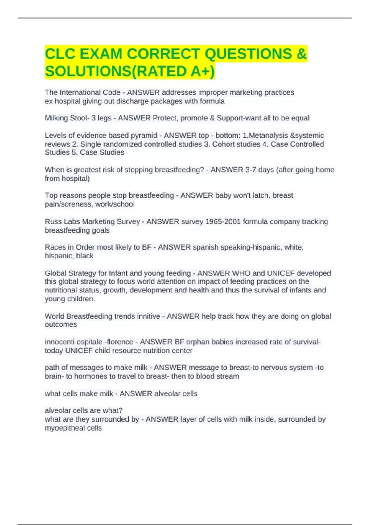 CLC EXAM CORRECT QUESTIONS & SOLUTIONS(RATED A+)
