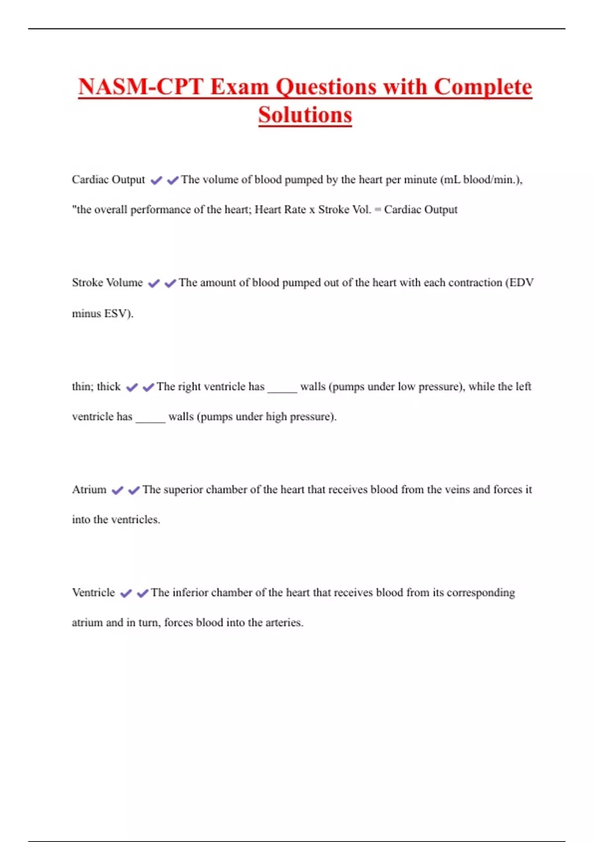 Stroke Volume The amount of blood pumped out of the heart with each contraction (EDV