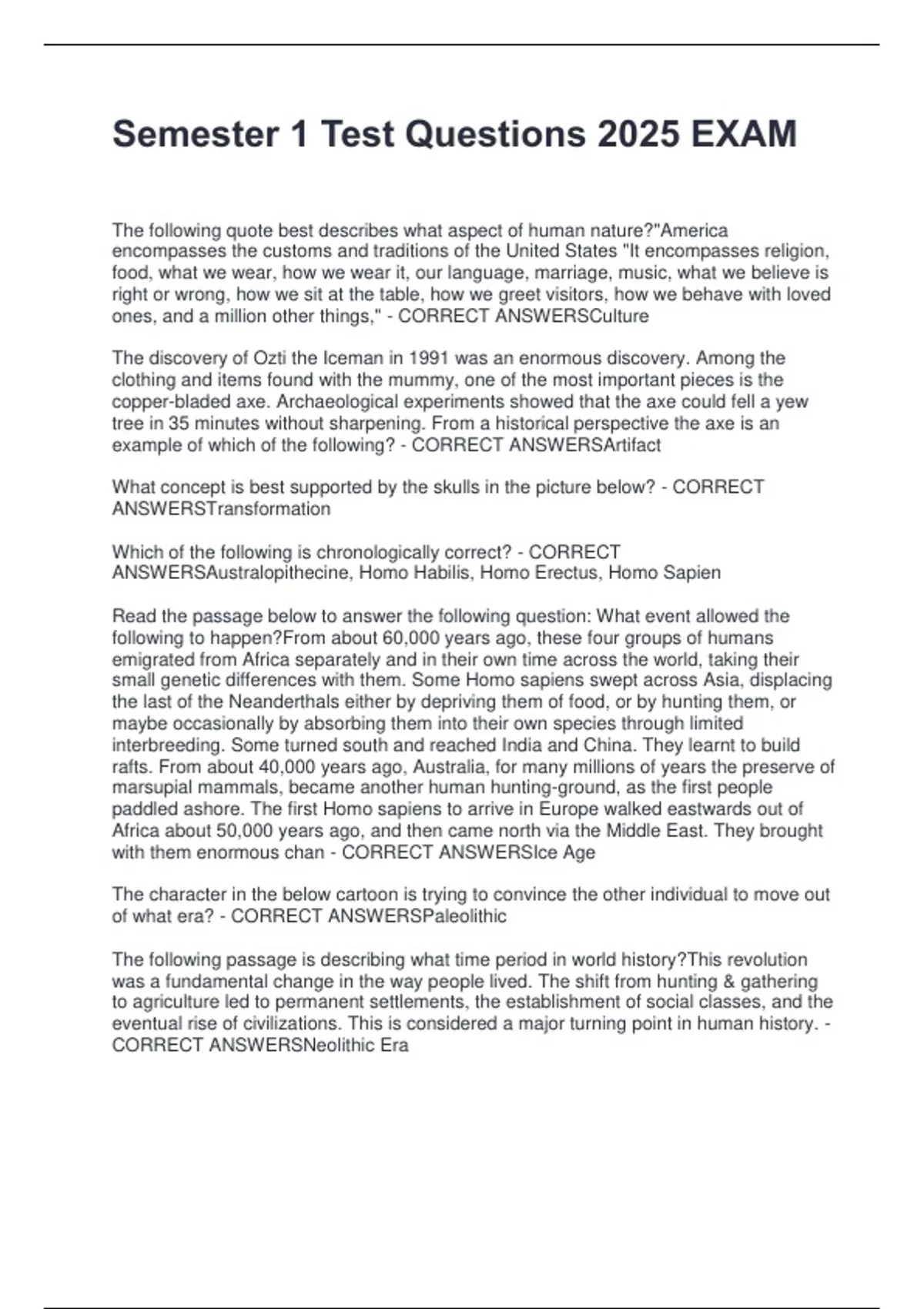 CORRECT ANSWERSNeolithic Era