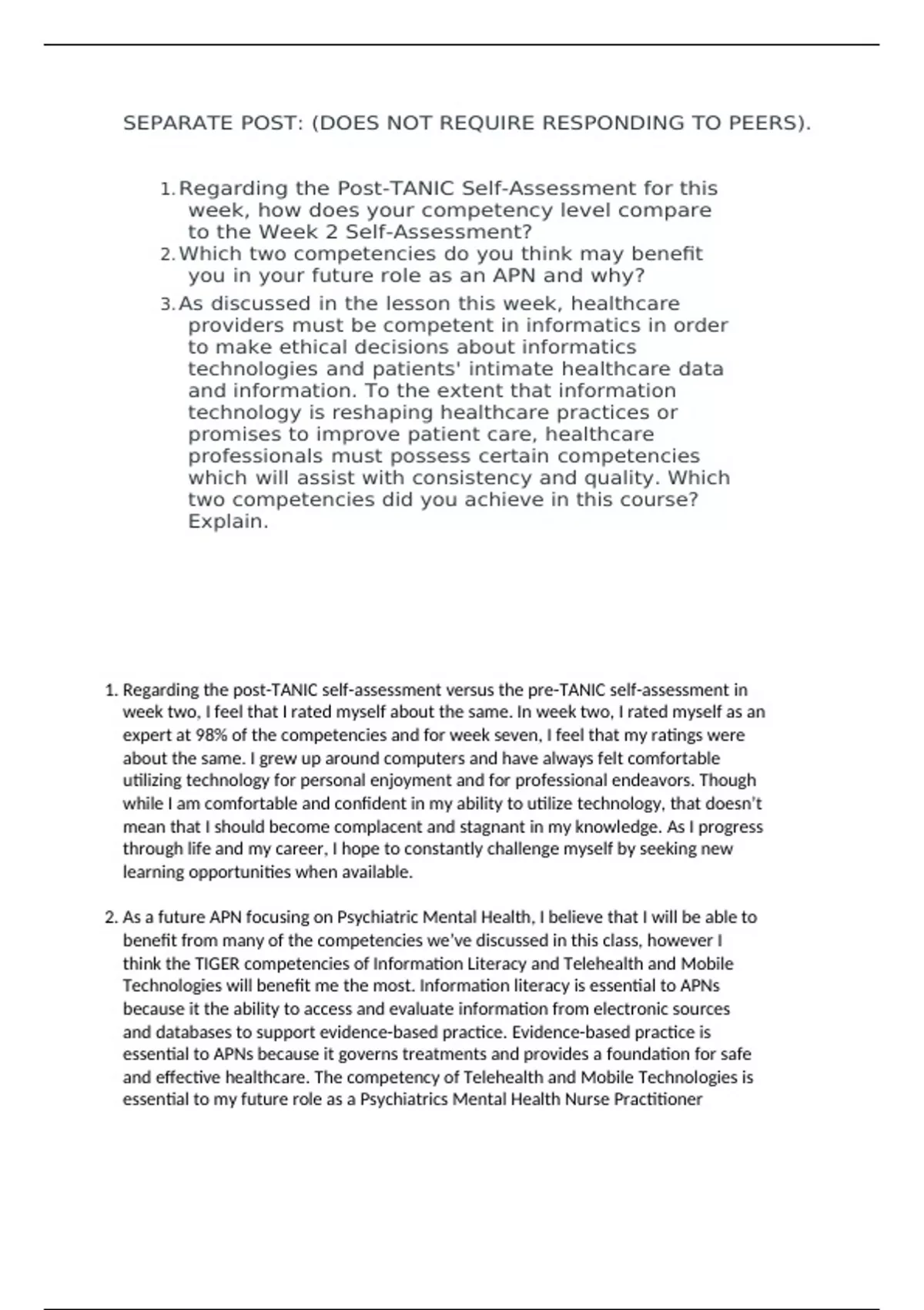 SEPARATE POST: (DOES NOT REQUIRE RESPONDING TO PEERS).