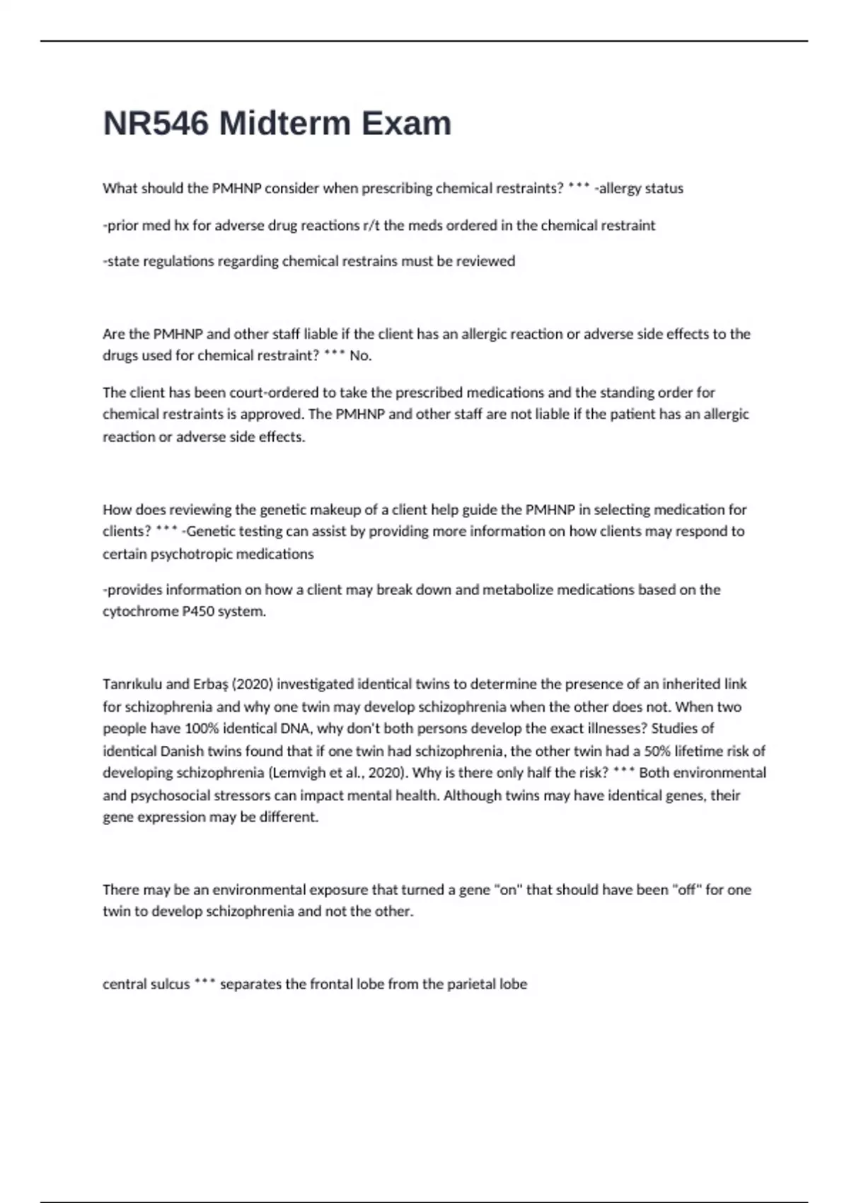 What should the PMHNP consider when prescribing chemical restraints? *** -allergy status