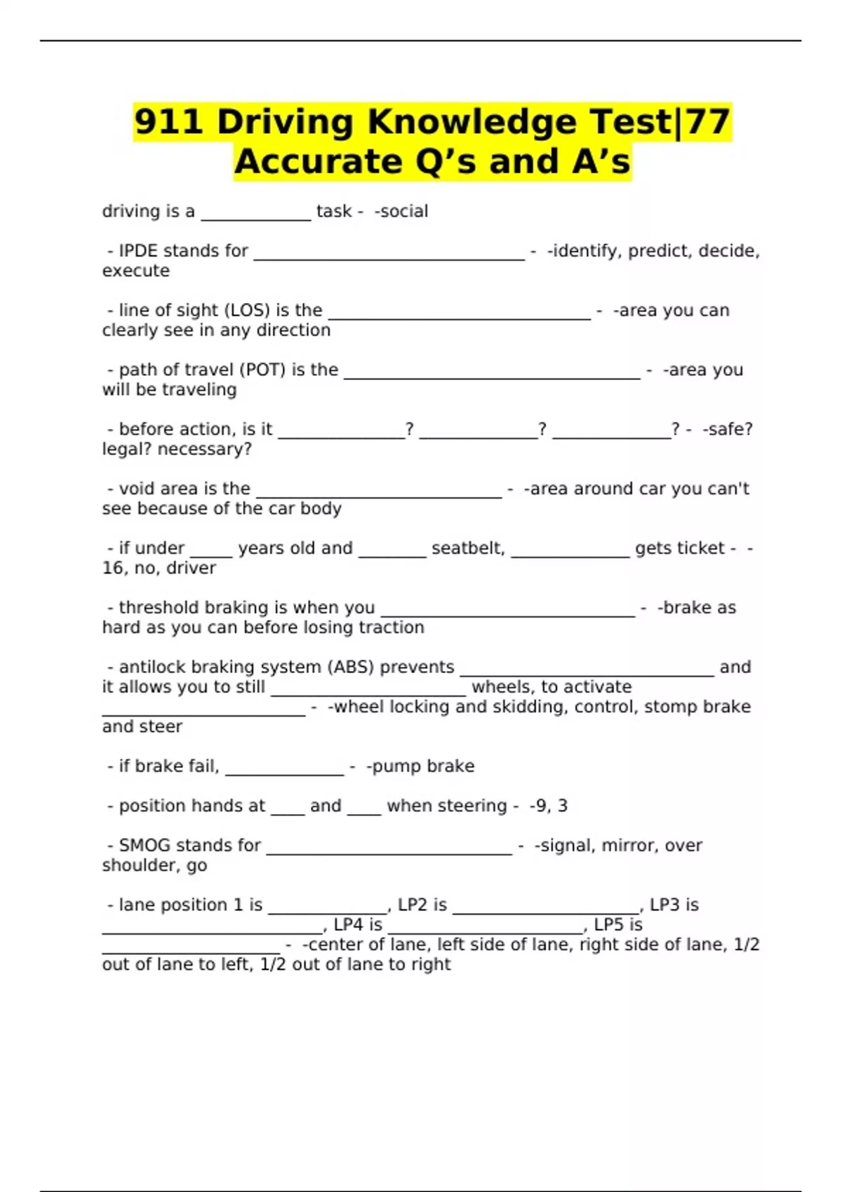 911 Driving Knowledge Test|77 Accurate Q’s and A’s