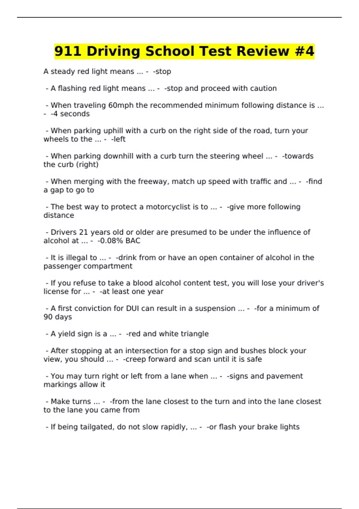 911 Driving School Test Review #4