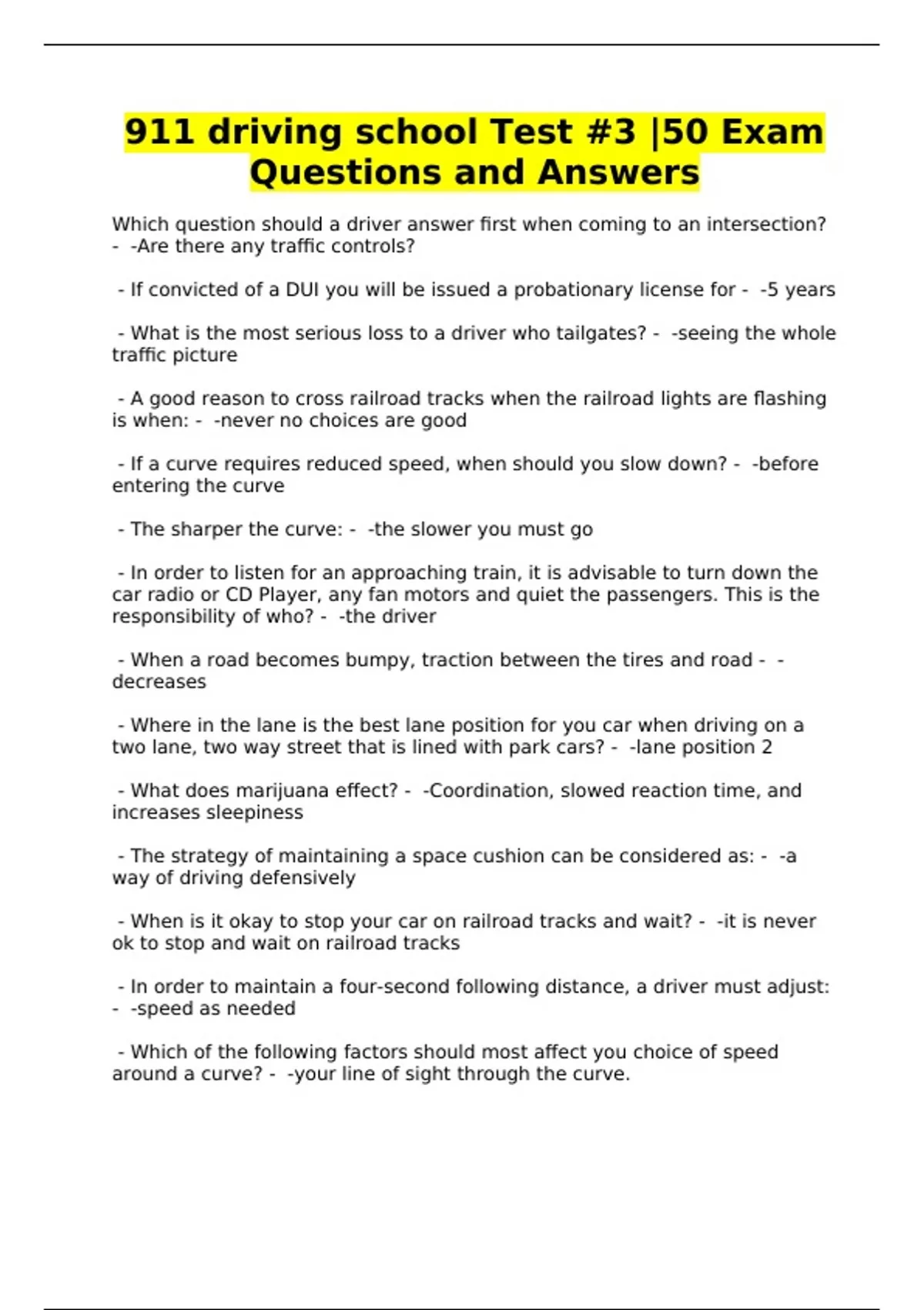 911 driving school Test #3 |50 Exam Questions and Answers