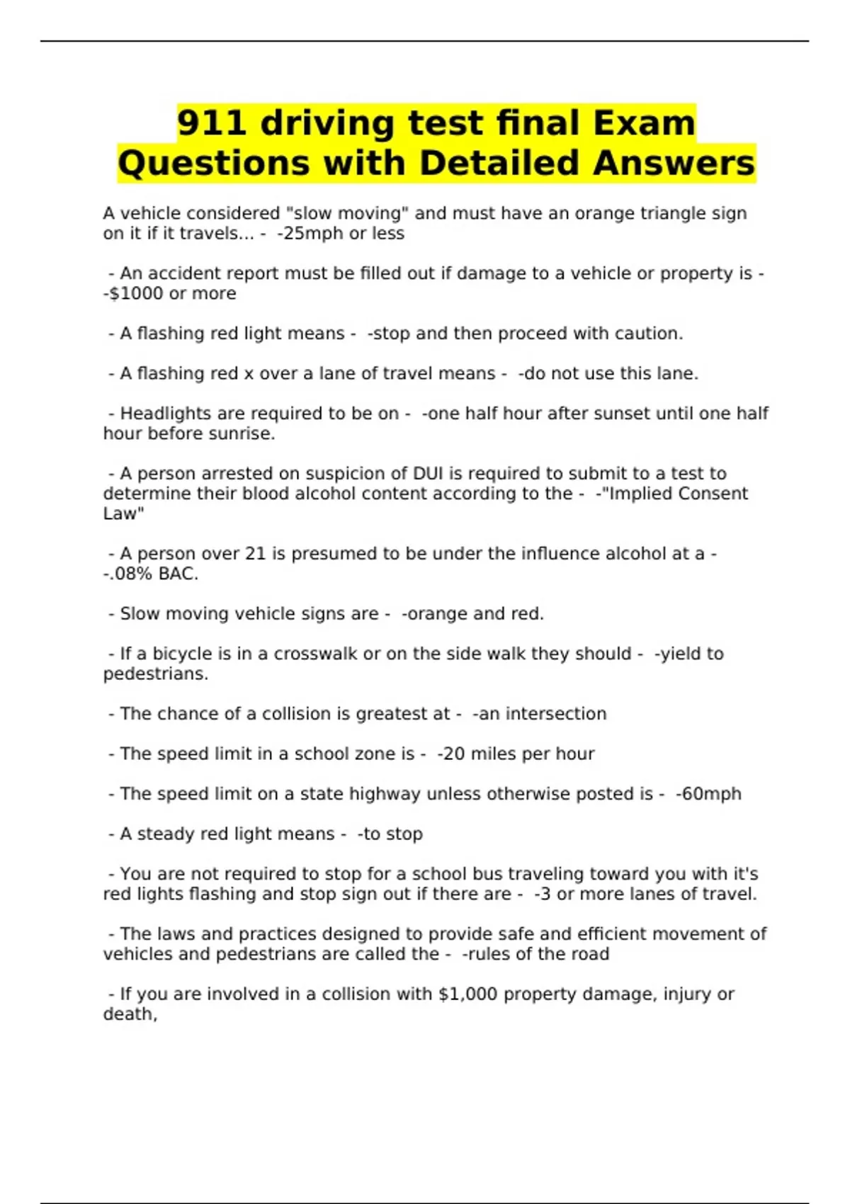 911 driving test final Exam