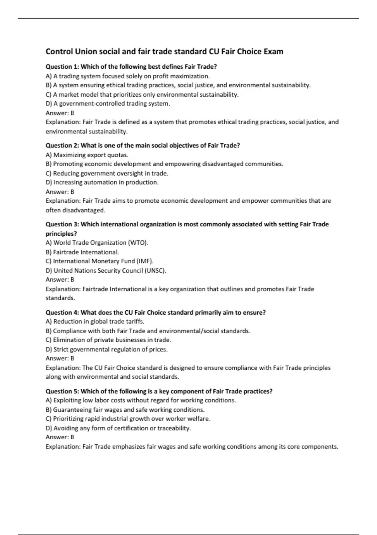Explanation: The CU Fair Choice standard is designed to ensure compliance with Fair Trade principles