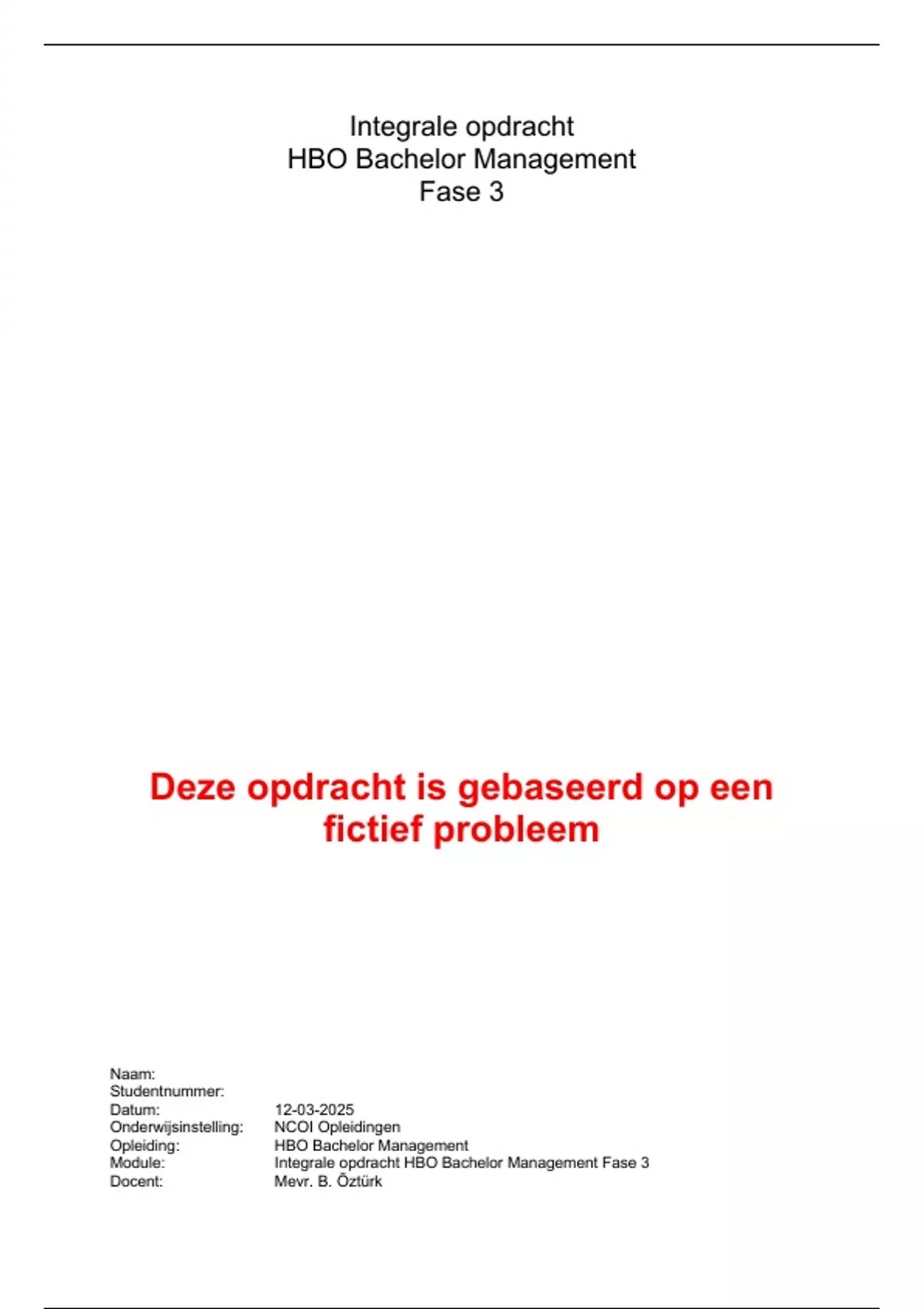 Module: Integrale opdracht HBO Bachelor Management Fase 3