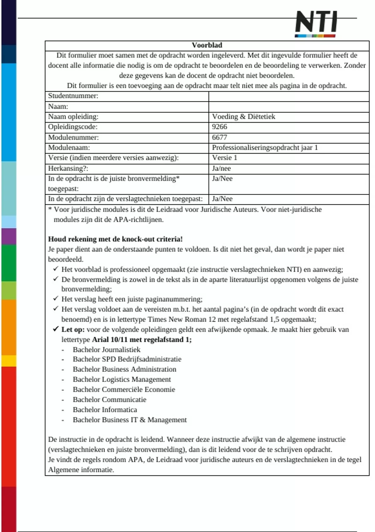 Het voorblad is professioneel opgemaakt (zie instructie verslagtechnieken NTI) en aanwezig;