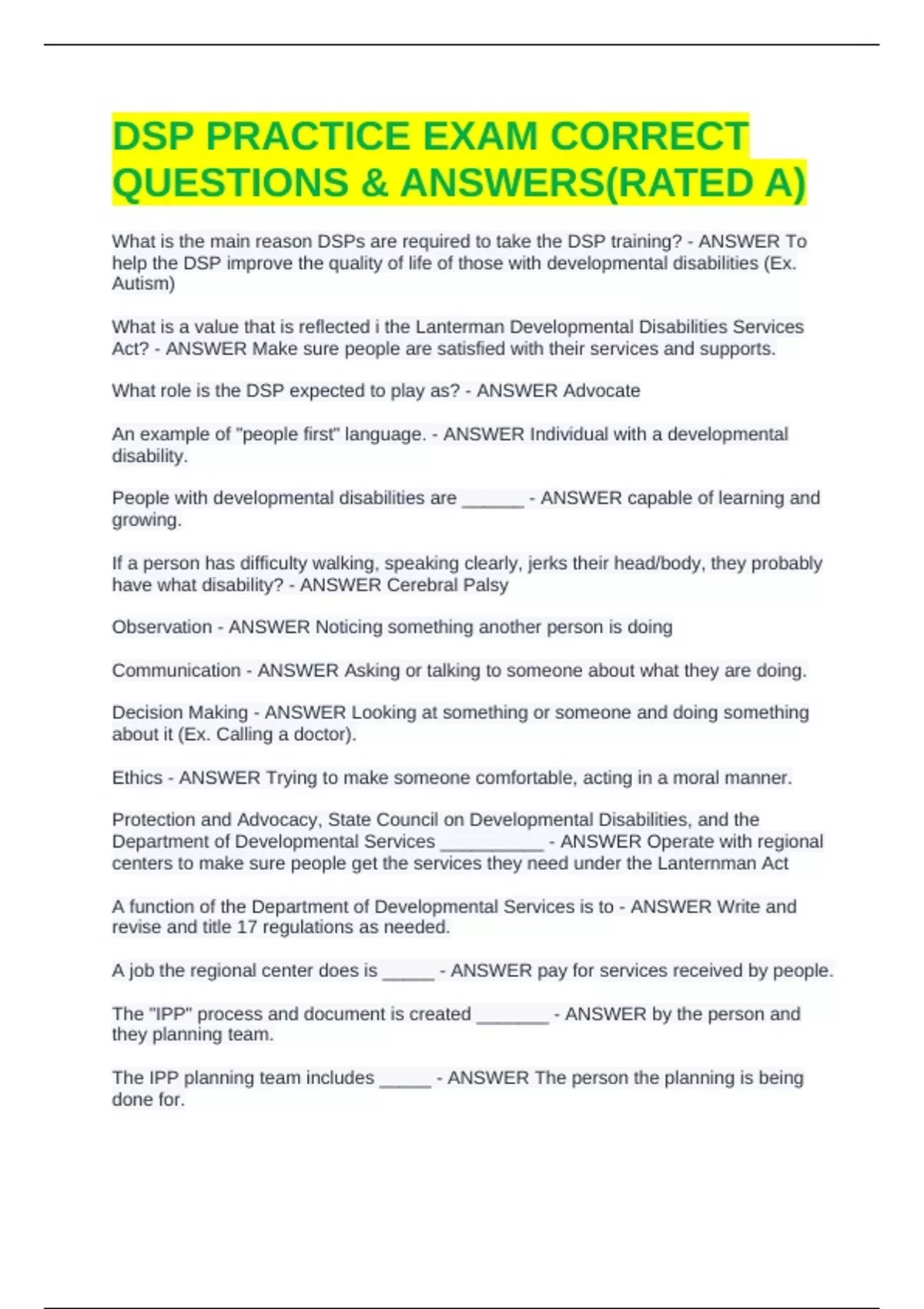 , The DSP helps people make sure they _______ - ANSWER have the opportunity for