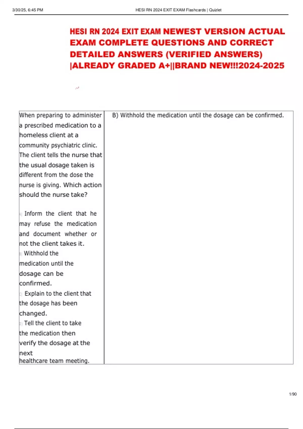 ,3/30/25, 6:45 PM HESI RN 2024 EXIT EXAM Flashcards | Quizlet