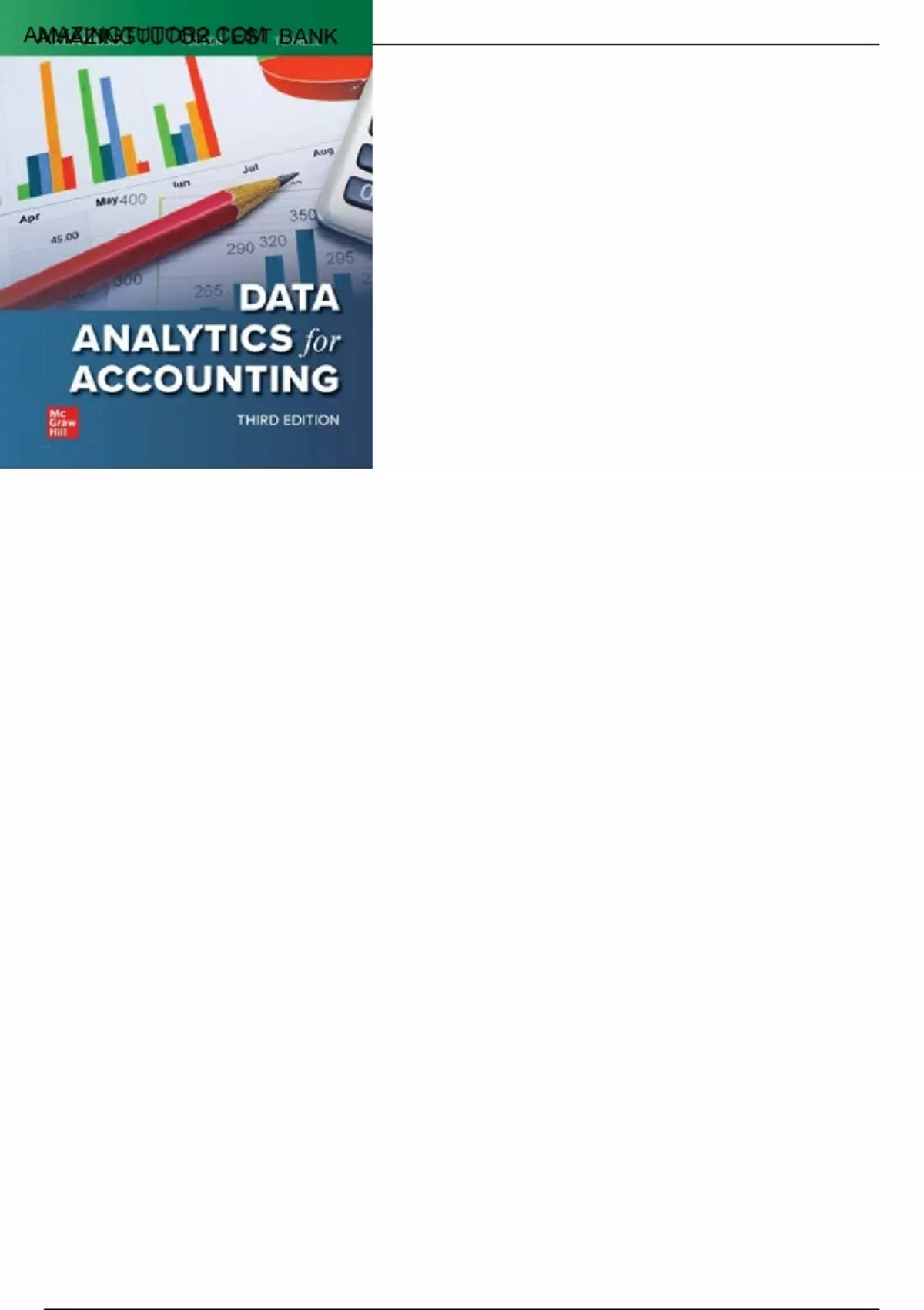 Test Bank for Data Analytics for Accounting 3e is designed to prepare your students with the necessary tools and skills they need to successfully perform data analytics through a conceptual framework and hands-on practice with real-world data. Using the IMPACT Cycle, the authors provide a conceptual framework to help students think through the steps needed to provide data-driven insights and recommendations. @AMAZINGTUTOR