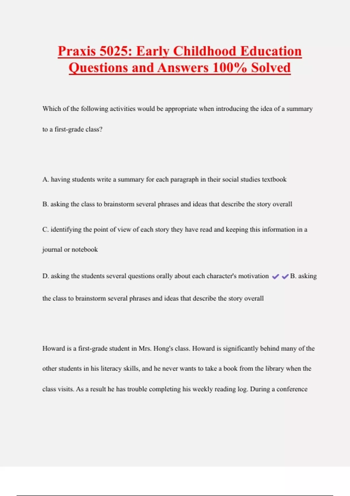 books." Which of the following might Mrs. Hong suggest to Howard and his parents?