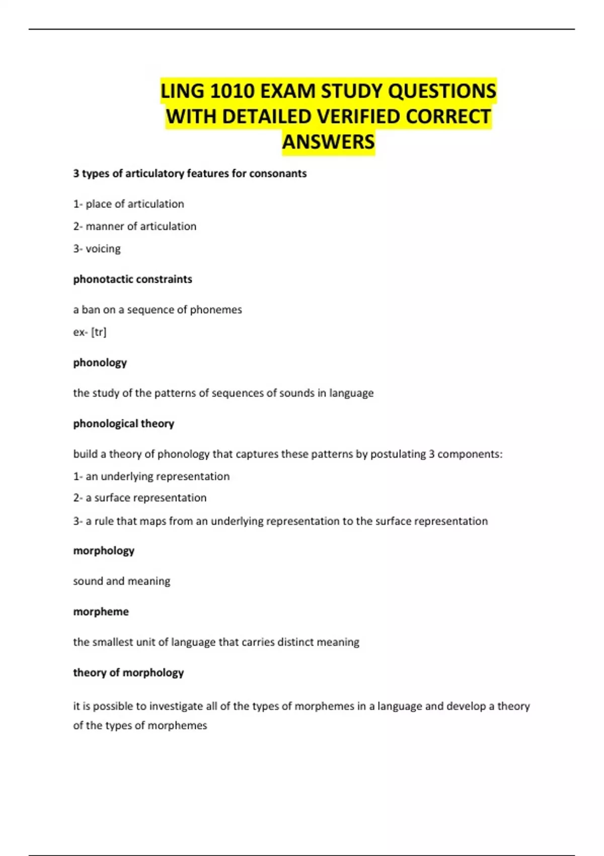 LING 1010 EXAM STUDY QUESTIONS