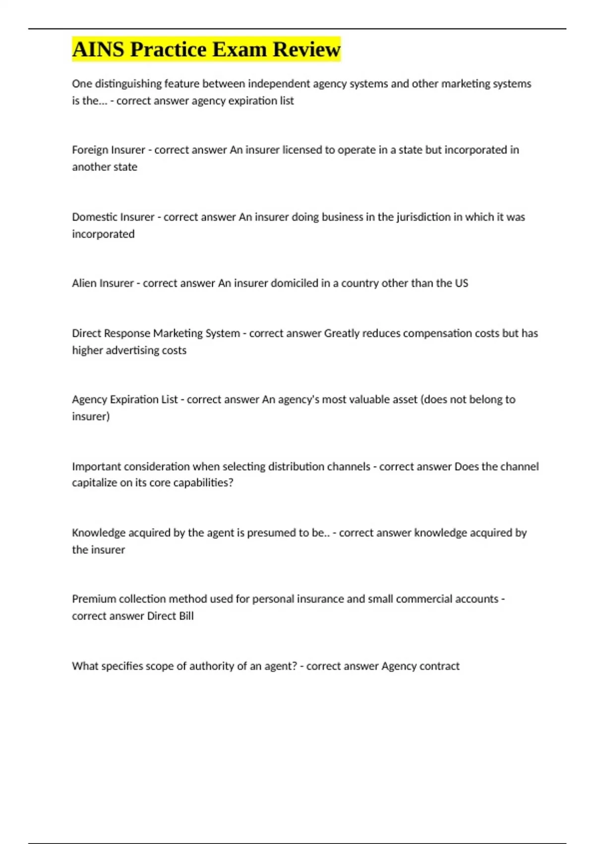 , AINS Practice Exam Review