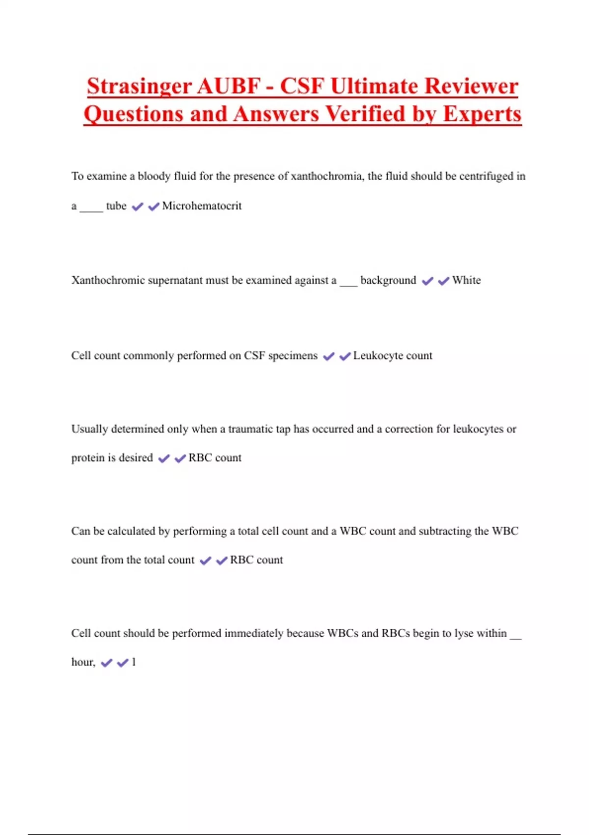 Cell count commonly performed on CSF specimens Leukocyte count
